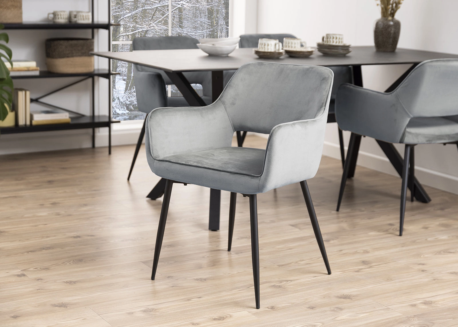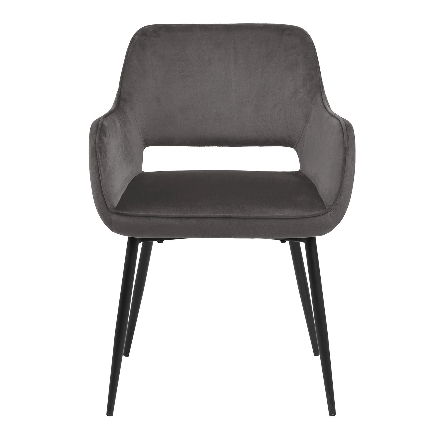 Krzesło Ranja to ponadczasowe krzesło z "dziurką". Doskonale sprawdzi się w nowoczesnym wnętrzu, restauracyjnej przestrzeni czy hotelowych pomieszczeniach. Nietypowy kształt krzesła został uzyskany dzięki jego lekko kanciatej bryle. Siedzisko zostało obite wytrzymałą tkaniną Dublin Dark grey 40. Podstawą krzesła są czarne malowane proszkowo metalowe nogi. Waga krzesła to 6,8 kg. Maksymalne obciążenie: 120kg