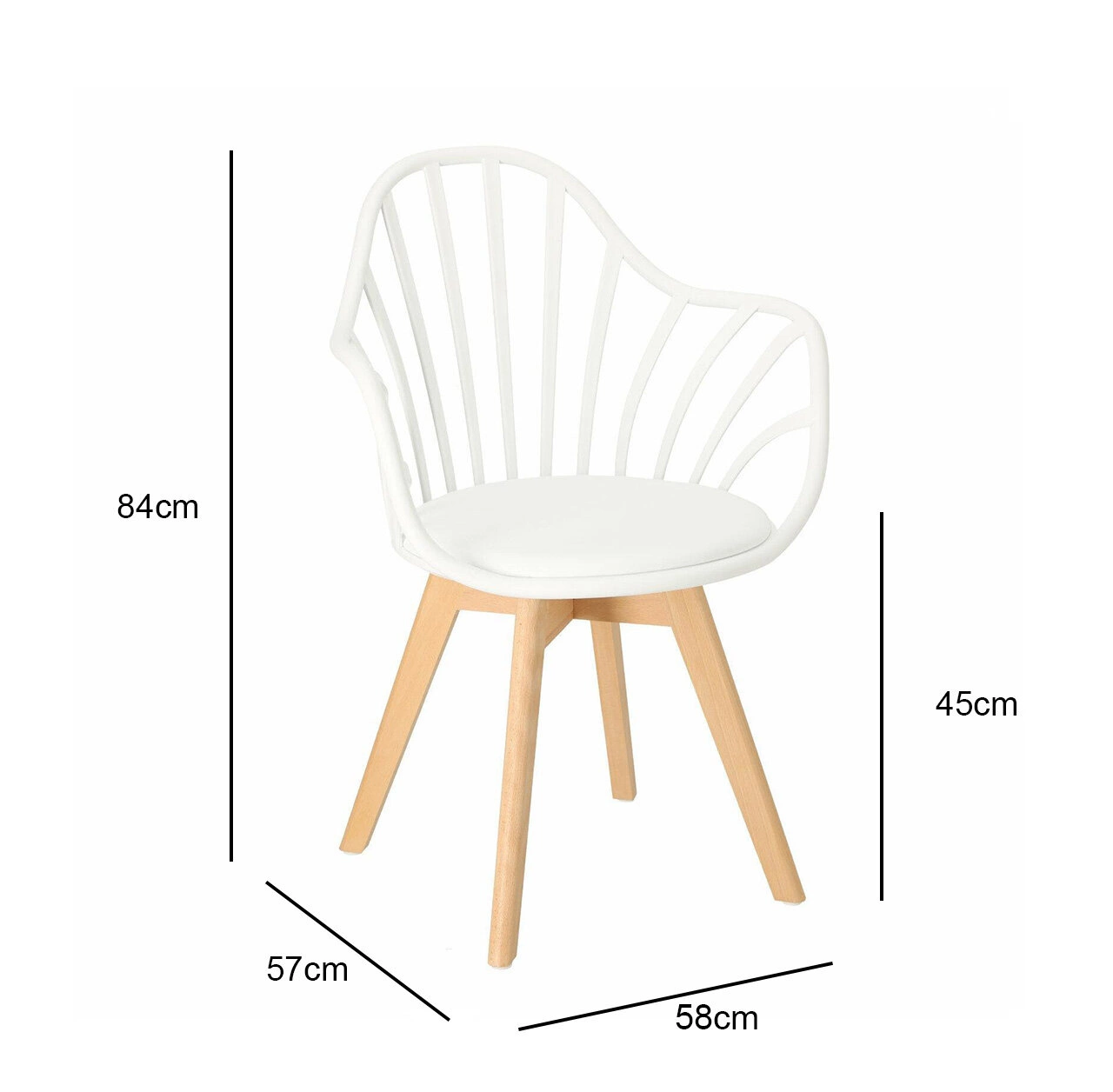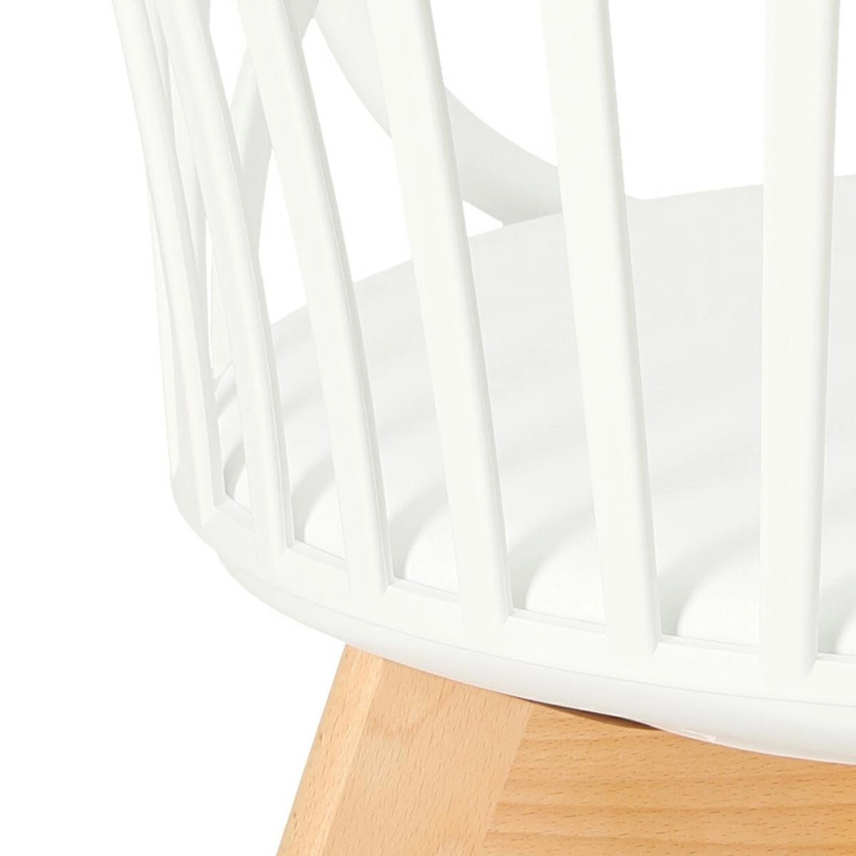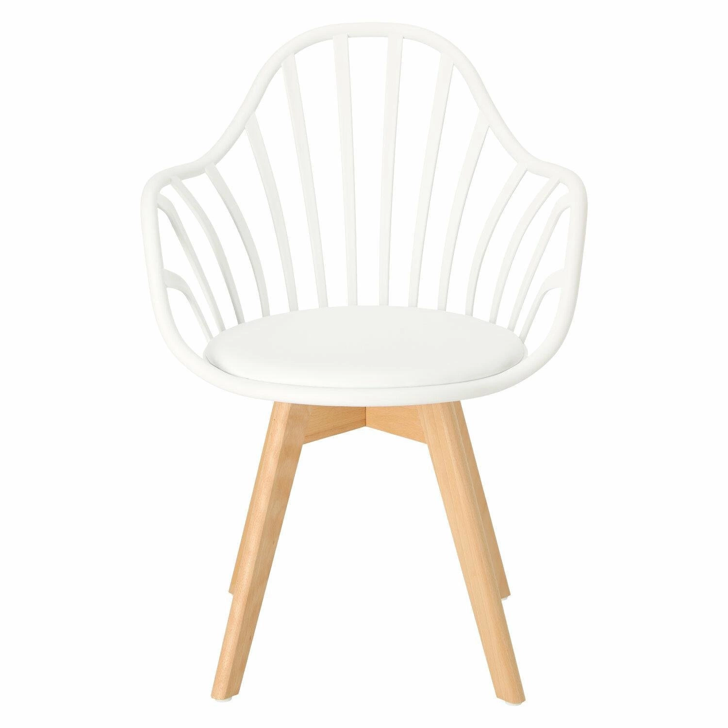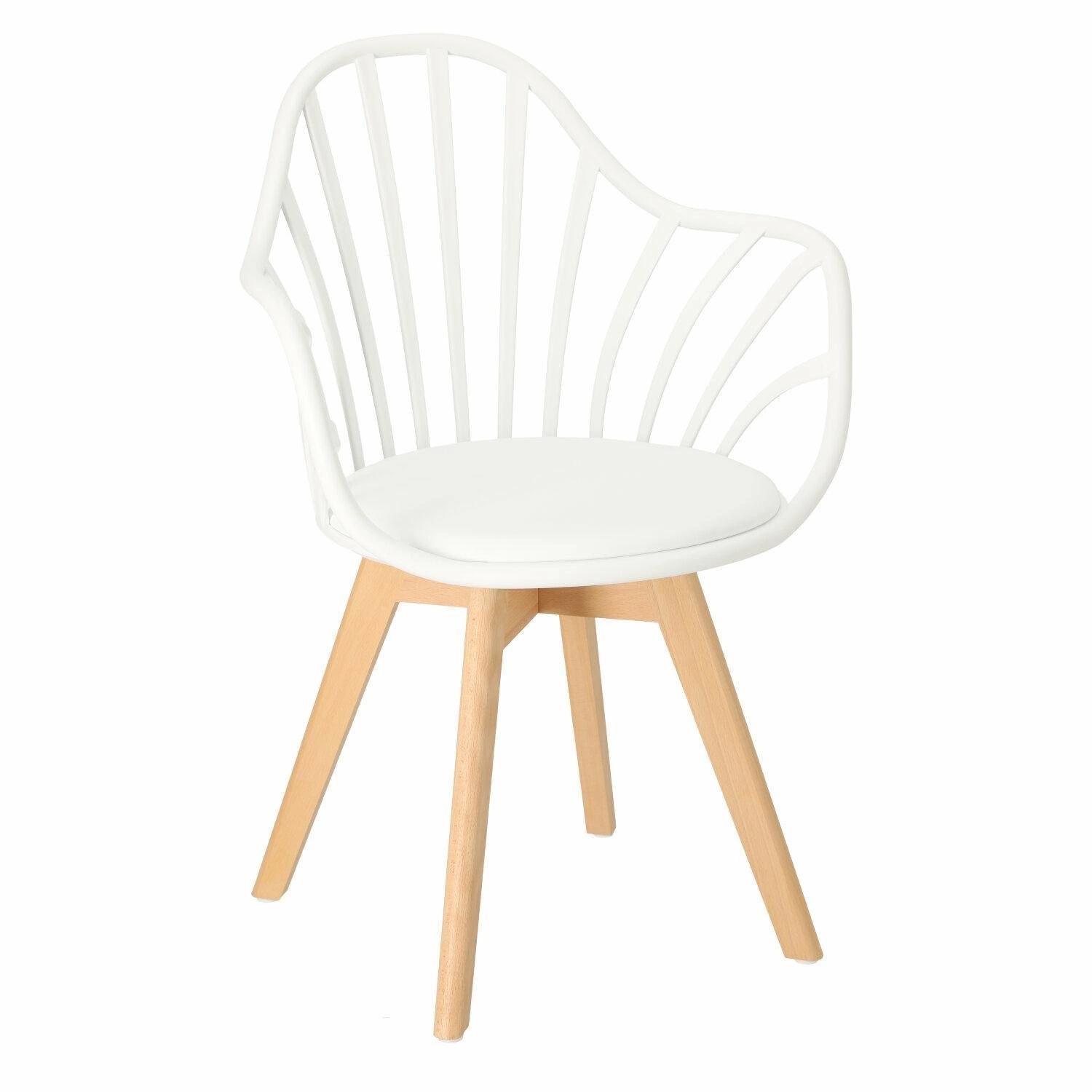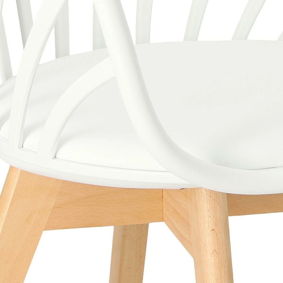 Krzesło Sirena będzie doskonale wyglądać we wnętrzach w stylu nowoczesnym i skandynawskim. Oparcie zostało wykonane z trwałego polipropylenu w kolorze białym, które dzięki specjalnym otworom zapewnia ciągłą wentylację. Materiał ten jest wyjątkowo wytrzymały na zmienne warunki i uszkodzenia mechaniczne. Jest także łatwy do utrzymania w czystości. Siedzisko jest wyposażone w miękką, wygodną poduszkę pokrytą eko skórą w kolorze białym. Wygodne podłokietniki stanowią jeden z największych atutów tego krzesła - pozwalają na swobodne ułożenie rąk podczas siedzenia. Nogi wykonane z drewna bukowego zapewniają trwałość na lata - są odporne na uszkodzenia mechaniczne. Mebel sprawdzi się świetnie w jadalni czy jako krzesło biurowe. Dzięki swojej nieoczywistej formie stanie się dodatkową dekoracją wnętrza.
