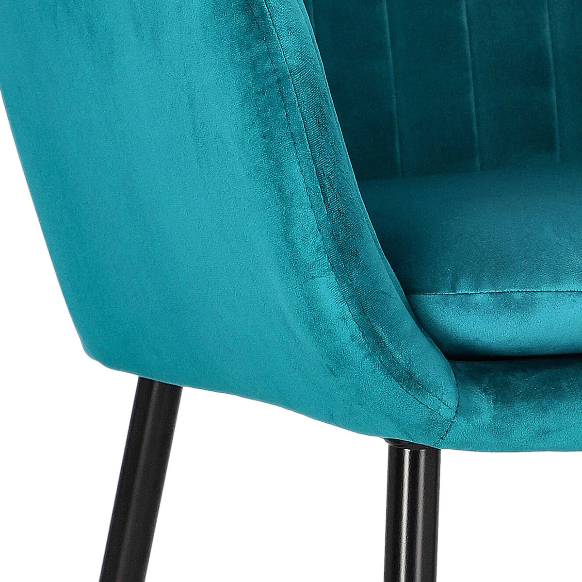 Krzesło do jadalni tapicerowane welur Emilia Actona butelkowa zieleń z podłokietnikami glamour