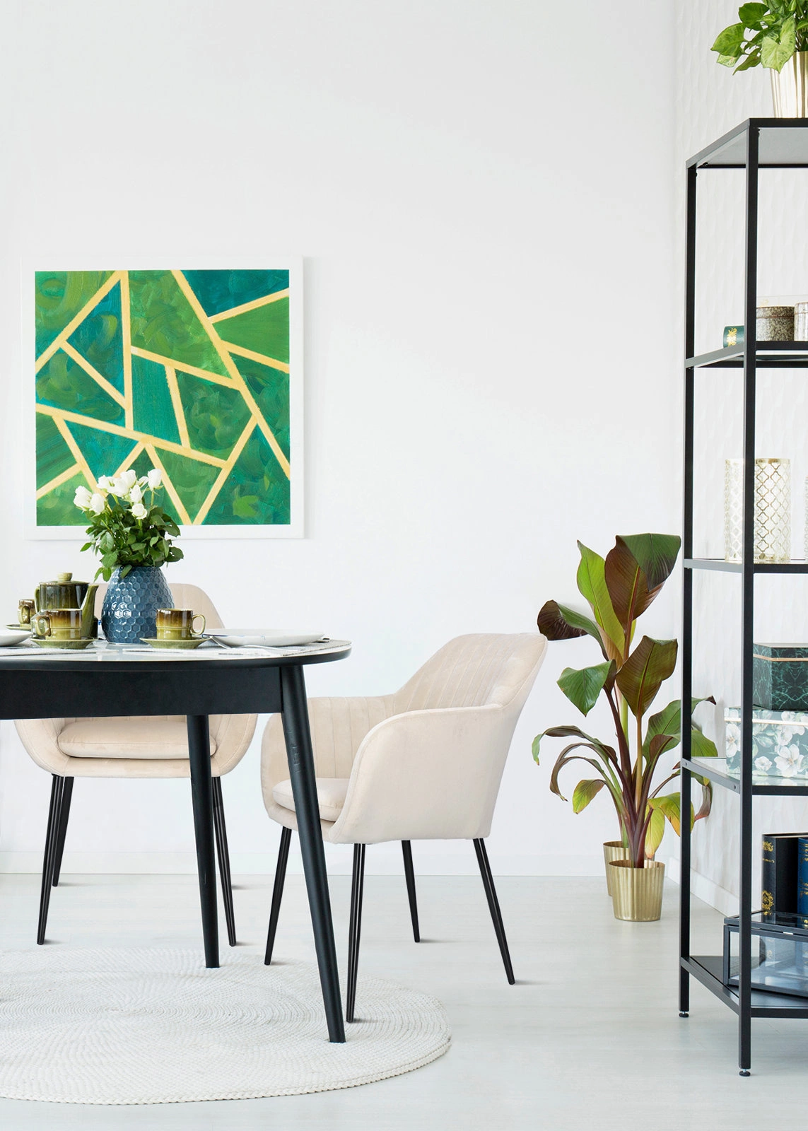 Seria EMILIA VELVET to niezwykle efektowna kolekcja, która odzwierciedla istotę uwielbianego na całym świecie stylu skandynawskiego. Stylistyka scandi łączy ze sobą elementy naturalne takie jak drewno z eleganckimi, przyjemnymi w dotyku materiałami. Tapicerowane siedzisko krzesła EMILIA VELVET zostało wykonane z najwyższej jakości tkaniny VIC. Aby wpasować się w aktualne trendy wnętrzarskie, zastosowano tkaninę o wykończeniu welurowym, dodatkowo podkreśloną estetycznym pikowaniem w postaci pionowych szwów. Siedzisko z podłokietnikami w doskonały sposób zadba o nasz komfort podczas pracy lub spożywanego posiłku. Podstawa to cztery metalowe nogi pomalowane na kolor czarny, które idealnie komponują się z intensywną głębią dostępnej kolorystyki krzeseł EMILIA VELVET.