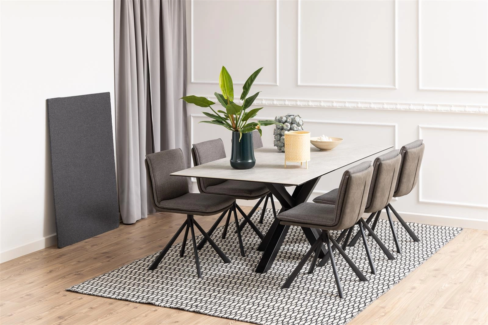 Wygodne siedzisko krzesła Flynn zostało tapicerowane antracytową tkaniną z mikrofibry, która jest nie tylko przyjemna w dotyku, ale także łatwa w pielęgnacji. Dzięki temu, krzesło Flynn jest nie tylko estetyczne, ale także praktyczne - idealne do codziennego użytkowania. Dodatkowo, krzesło Flynn jest wytrzymałe i może pomieścić osobę o wadze do 120 kg.