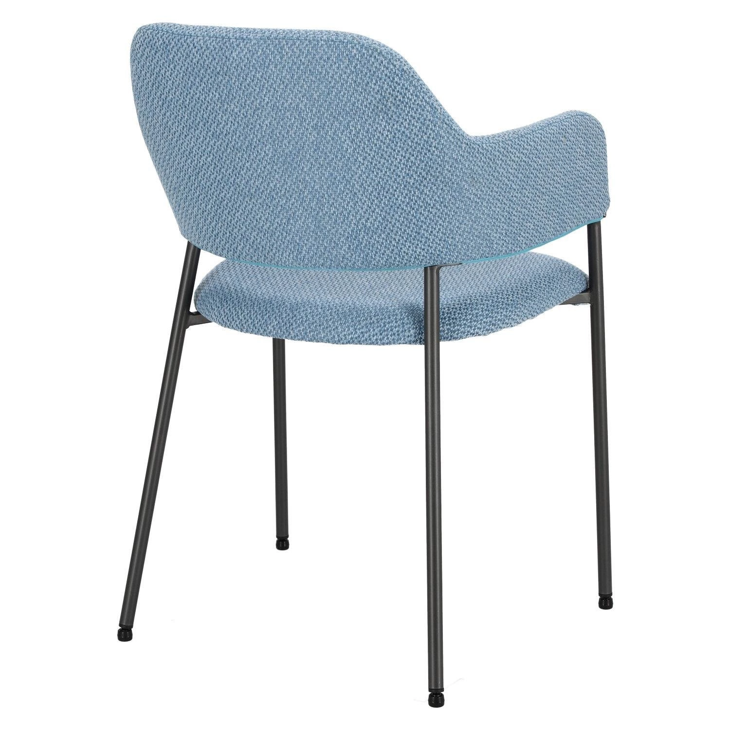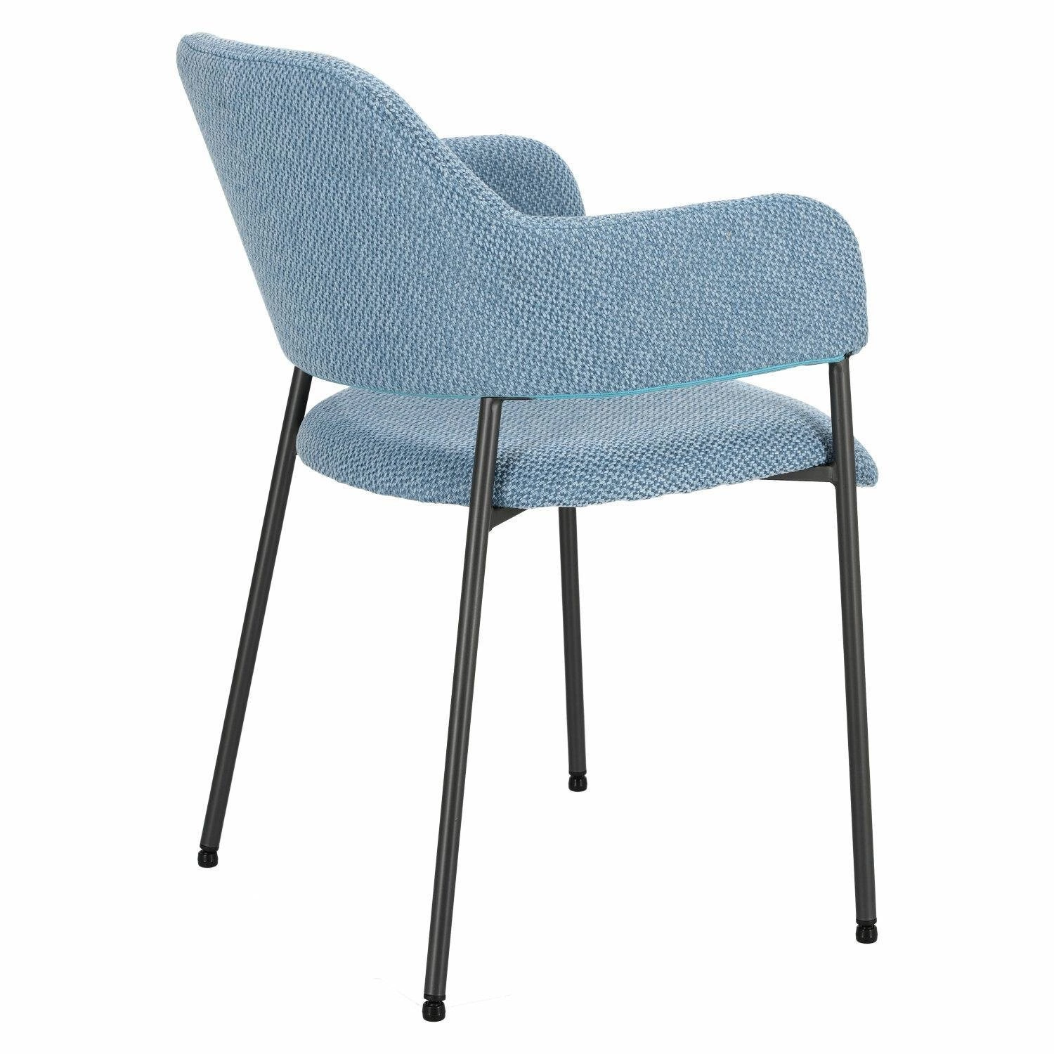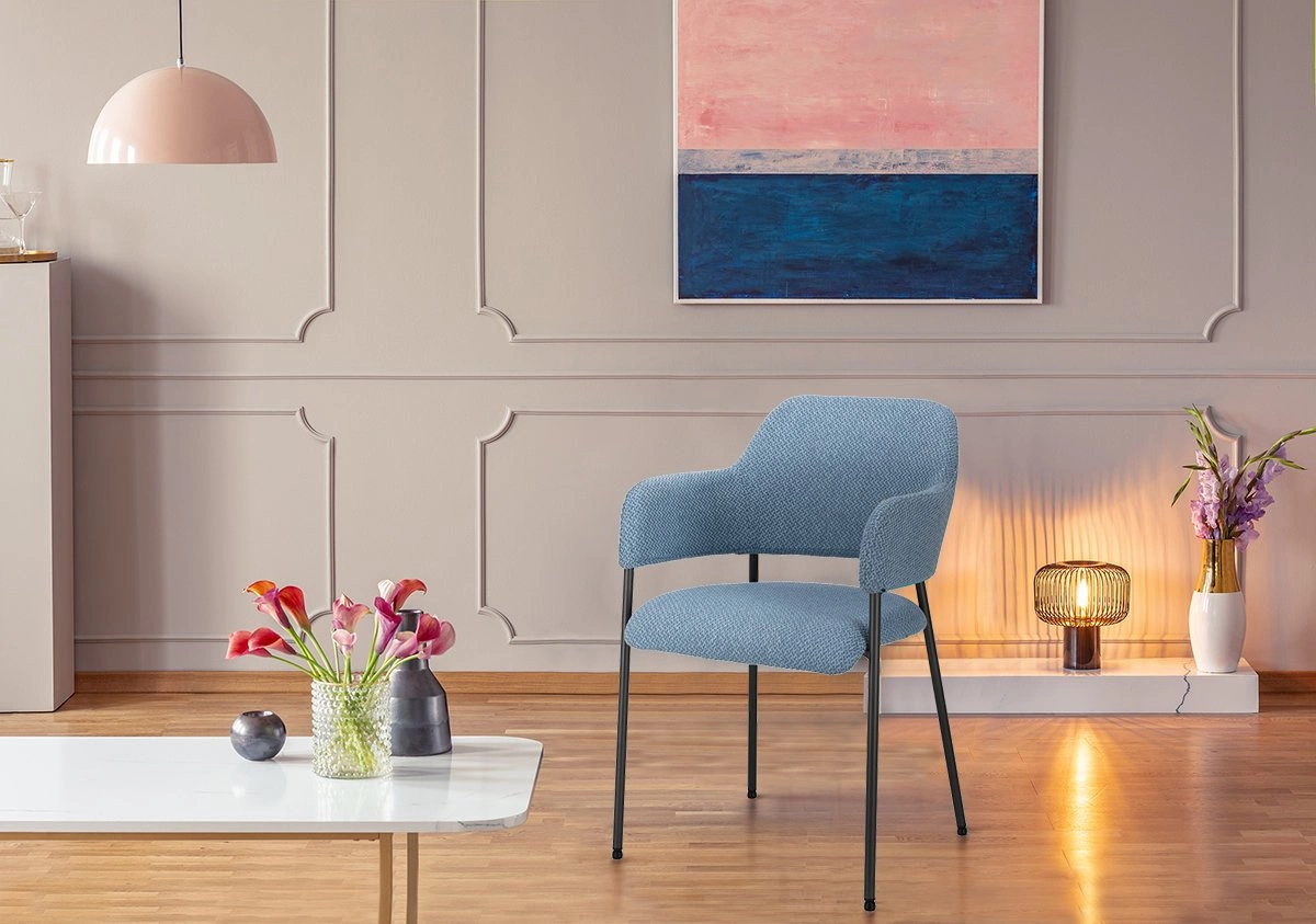 Modernistyczne krzesło Gato to połączenie współczesnego designu z nutą klimatu retro. Taka kombinacja gwarantuje niezapomniany efekt estetyczny, który zostanie doceniony nawet przez najbardziej wymagających. Siedzisko oraz oparcie wypełnione są miękką gąbką, która sprawia, że podczas siedzenia możemy poczuć się jak na chmurce. Tapicerowane siedzisko obito tkaniną o wykończeniu melanżowym, dzięki czemu kolor krzesła oryginalnie wyróżnia się na tle innych, posiadając urokliwe dwie tonacje barwne. Całoś osadzono na metalowym stelażu w czarnym kolorze, który nadaje kompozycji modernistycznego charakteru. Nogi krzesła zakończone są gumowym zabezpieczeniem przed rysowaniem się podłoża.