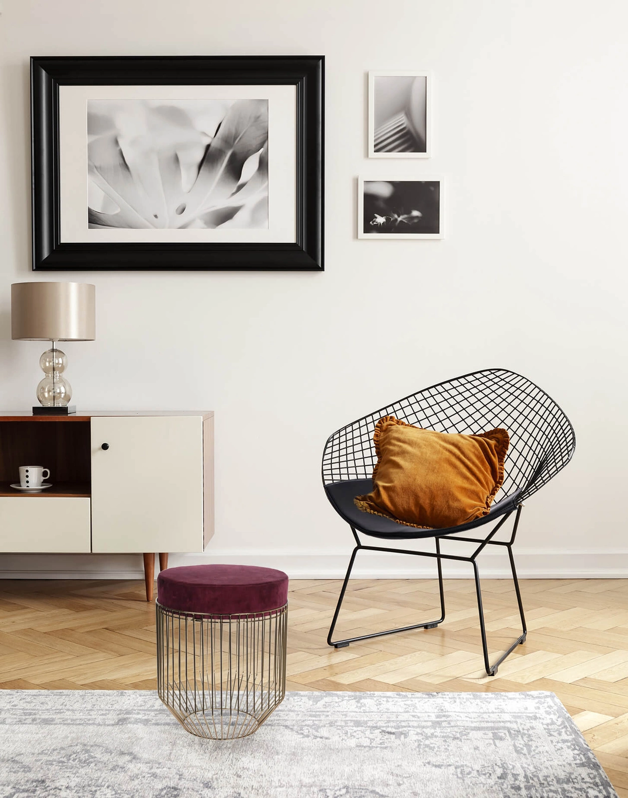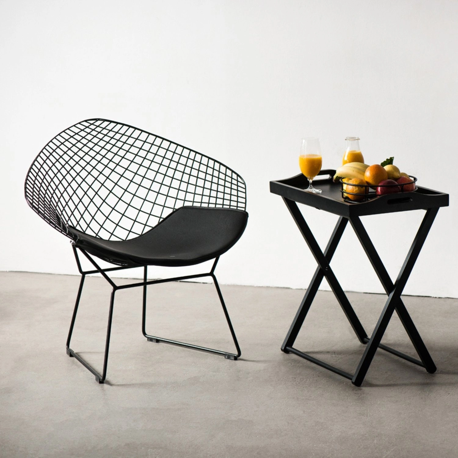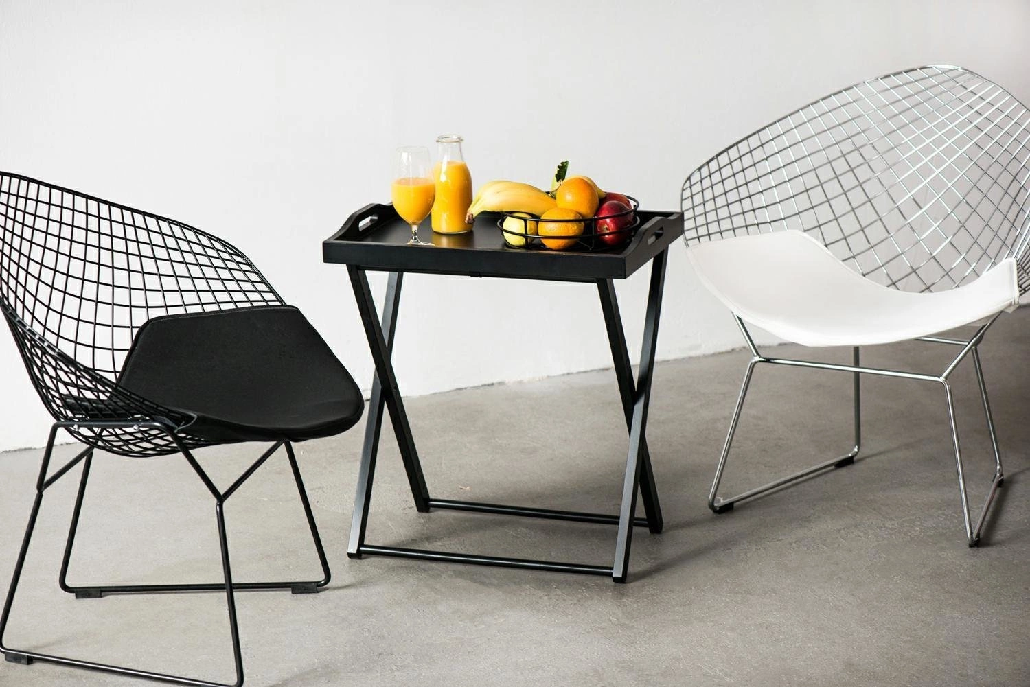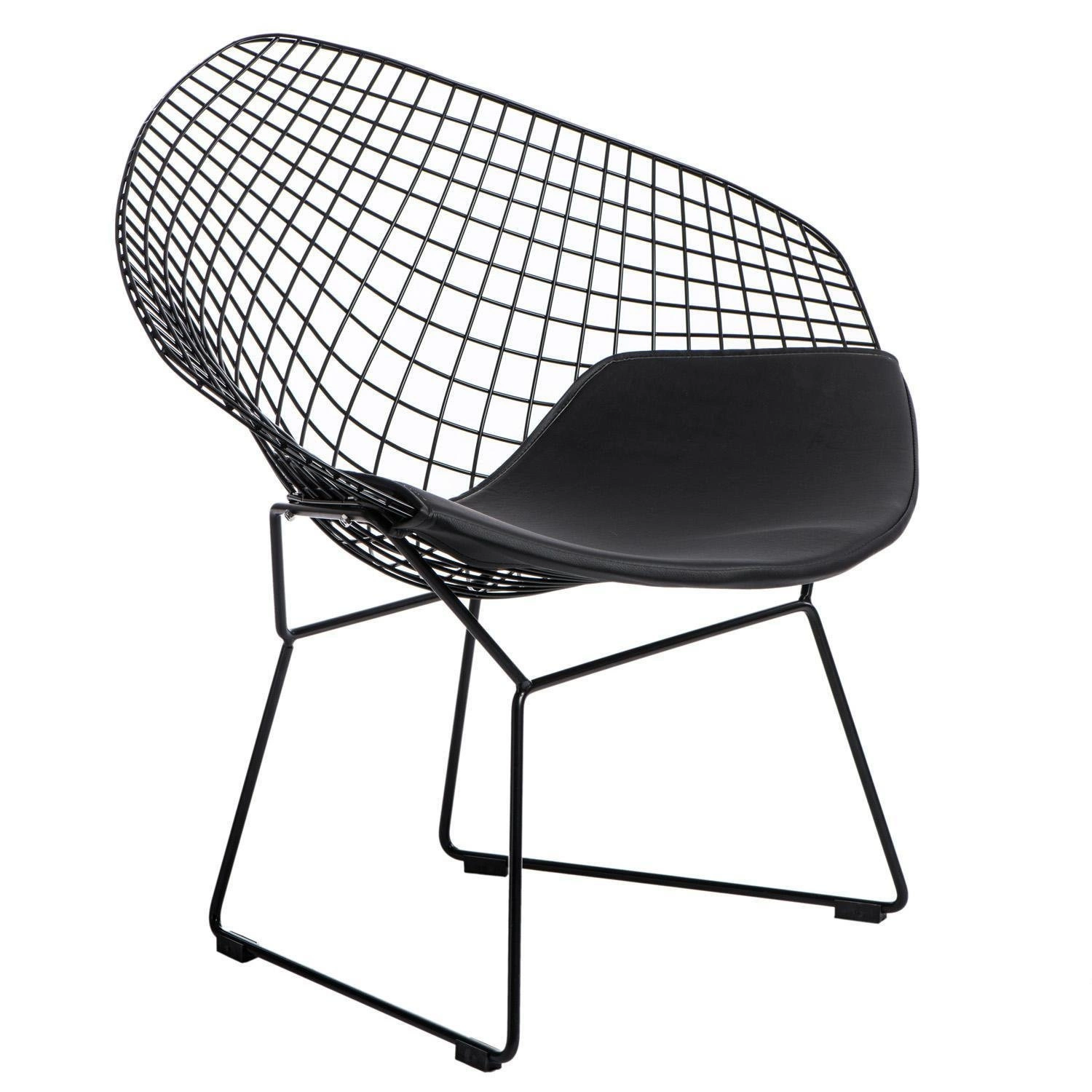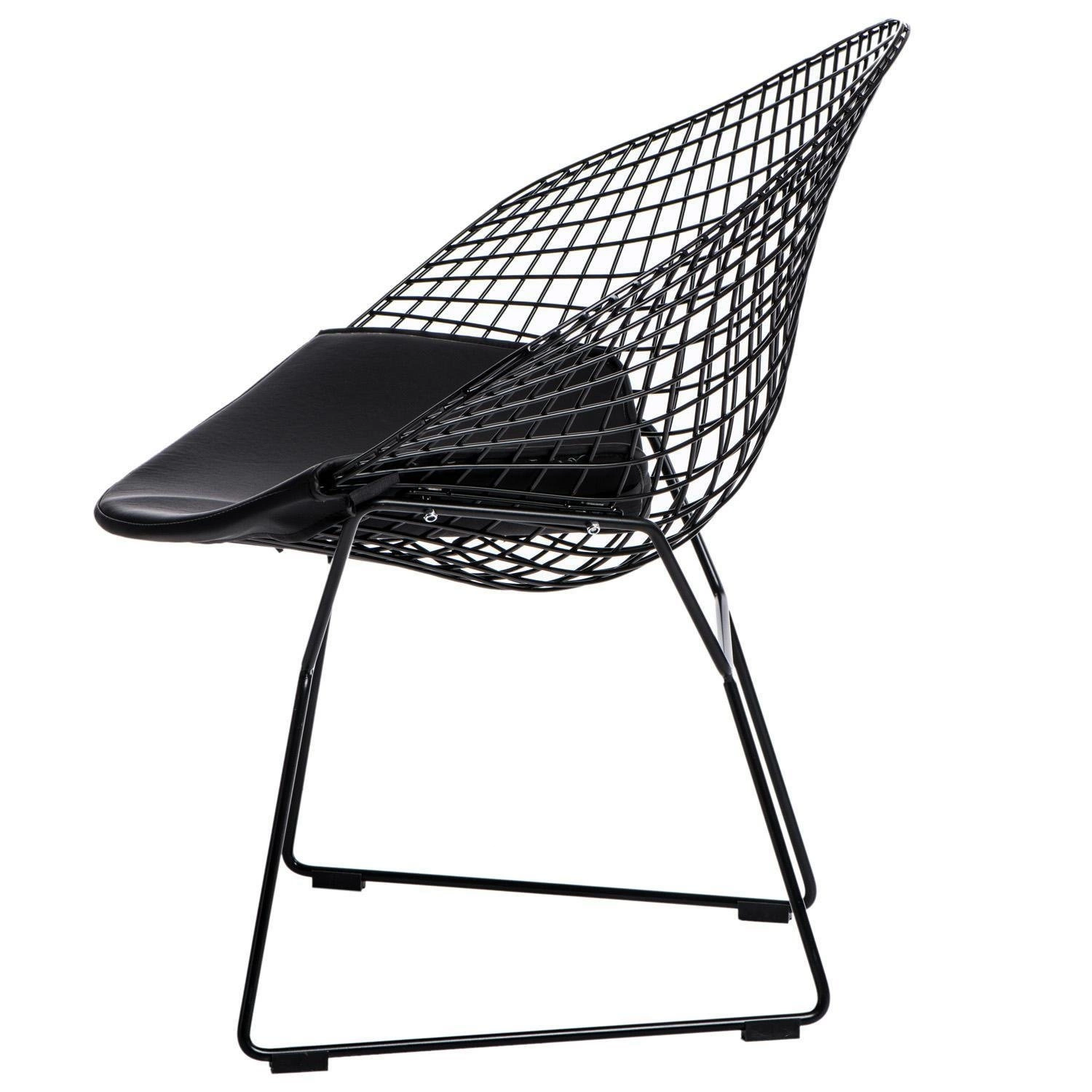 Designerskie krzesło HarryArm to designerska forma, która od lat zachwyca swoim wyglądem. Opływowy kształt sprawia, że krzesło staje się trójwymiarowe. Wykonane z metalu lakierowanego na kolor czarny o wykończeniu w połysku. Poduszka na siedzisku wykonana została ze skóry ekologicznej wykończonej matowo. Poduszkę należy przymocować do siedziska za pomocą rzepów znajdujących się na jej spodzie. Produkt wymaga montażu. Jego maksymalne obciążenie wynosi 120kg. Krzesło w stylu Glamour posiada podłokietniki, podstawą są płozy z nóżkami posiadającymi podkładki.