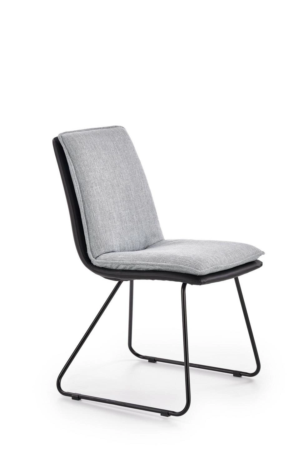 Siedzisko i oparcie zostały obite wysokiej jakości ekoskórą w eleganckim kolorze czerni, nadając krzesłu niepowtarzalny charakter. Miękka poduszka, obita tkaniną w delikatnym odcieniu jasnego popielu, zapewni Ci niezrównany komfort podczas długich wieczorów spędzonych przy stole. Natomiast podstawa wykonana ze stali malowanej proszkowo na kolor czarny gwarantuje stabilność.