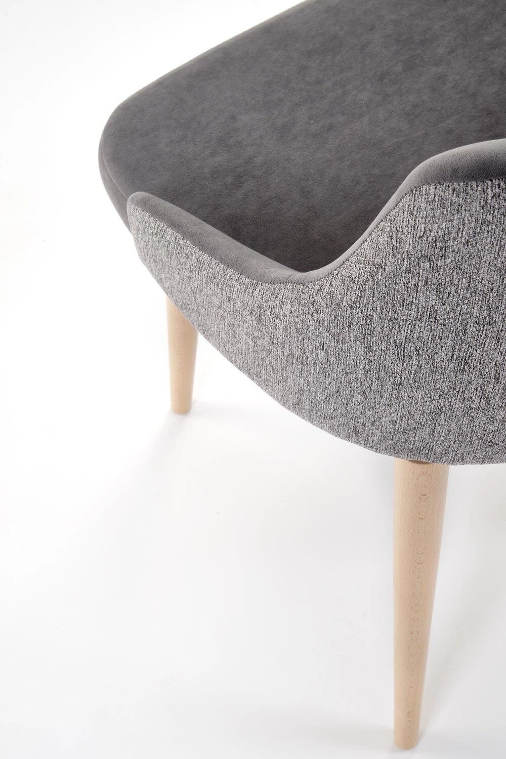 - Popielaty kolor i naturalne drewniane nogi sprawiają, że krzesło wpasowuje się w różnorodne wnętrza.