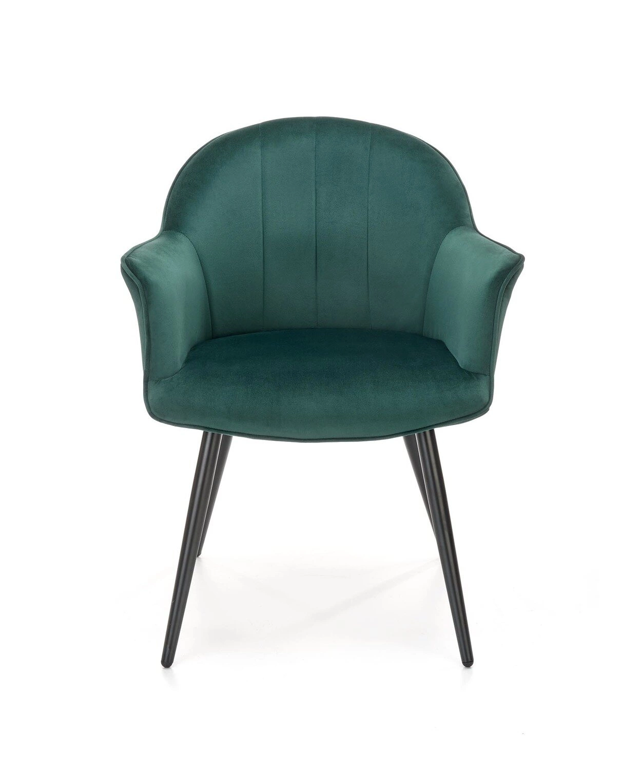 Nowoczesność na wysokim poziomie! Karine to krzesło, które wprowadzi nowoczesność, wygodę i elegancję do Twojego wnętrza. Wykonane z najwyższej jakości materiałów, nie tylko będzie doskonale pasować do Twojej jadalni, salonu czy sypialni przy toaletce, ale także zapewni Ci niezrównany komfort. Jego miękka i aksamitna tkanina velvet nie tylko dodaje mu elegancji, ale także jest przyjemna w dotyku, zapewniając Ci wyjątkowy komfort podczas siedzenia. Dodatkowo, podłokietniki sprawiają, że siedzenie staje się jeszcze bardziej wygodne, niezależnie od tego, czy korzystasz z krzesła przy stole w trakcie codziennych posiłków, czy też relaksujesz się, czy przygotowujesz w sypialni. Trwała konstrukcja z podstawą z malowanej proszkowo stali gwarantuje nie tylko długotrwałą użytkowanie krzesła, ale także jego stabilność. Smukłe i szeroko rozstawione nogi sprawiają, że mebel utrzymuje się pewnie na swoim miejscu, bez obaw o ewentualne przewrócenie. Oparcie krzesła zdobią pionowe przeszycia, które nadają mu niepowtarzalny wygląd. To detale, które przyciągają uwagę i dodają uroku nowoczesnemu wnętrzu. Dodatkowo, dostępny w kolorze zielonym, Karine ożywi Twoje wnętrze, dodając mu świeżości i energii. Co musisz wiedzieć przed zakupem? Nowoczesny design, który doskonale wpisuje się w nowoczesne wnętrza Wygodne siedzenie dzięki miękkiej i aksamitnej tkaninie velvet Elegancki i luksusowy wygląd, który dodaje uroku pomieszczeniu