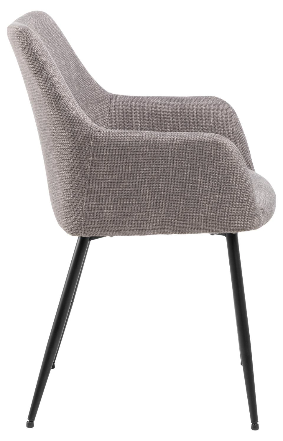 Krzesło Lizzy z podłokietnikami to idealne połączenie klasyki i nowoczesności, które świetnie sprawdzi się w jadalni, salonie czy gabinecie. Wykonane z wysokiej jakości materiałów, krzesło posiada tapicerowane siedzisko i oparcie, obite grubą tkaniną Basel w odcieniu jasnoszarego, z subtelnym efektem dwukolorowym. Tkanina ta nie tylko dodaje elegancji, ale również zapewnia trwałość i wygodę użytkowania. Na plecach oparcia znajduje się praktyczny zamek błyskawiczny, co ułatwia ewentualne zdejmowanie tapicerki do czyszczenia. Solidna, malowana proszkowo podstawa w czarnym, matowym kolorze zapewnia stabilność oraz nowoczesny, uniwersalny wygląd, który doskonale komponuje się z różnymi stylami wnętrz – od klasycznego po loftowy.