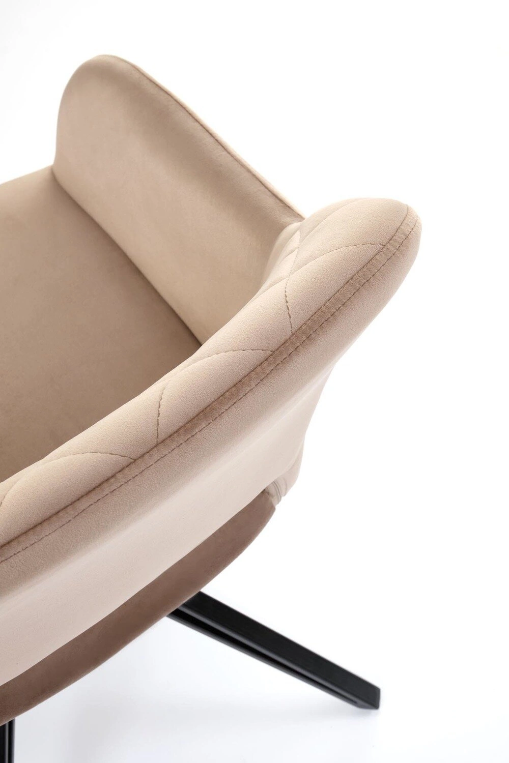 Krzesło obrotowe Cretas Velvet beżowe to połączenie luksusu, wygody i nowoczesnego designu, które doskonale sprawdzi się w różnych aranżacjach wnętrz. Wykonane z wysokiej jakości tkaniny velvetowej w eleganckim beżowym kolorze (BLUVEL 40) oraz wyposażone w cztery stabilne, czarne nogi malowane proszkowo, krzesło to emanuje stylem i trwałością. Nogi krzesła są zabezpieczone od spodu, co chroni podłogę przed uszkodzeniami, zapewniając jednocześnie stabilność mebla. Szerokie kubełkowe siedzisko z ozdobnymi pikowaniami na oparciu oraz podłokietniki gwarantują komfort użytkowania, a otwór między siedziskiem a oparciem zapewnia cyrkulację powietrza, co jest szczególnie przydatne podczas długiego użytkowania.