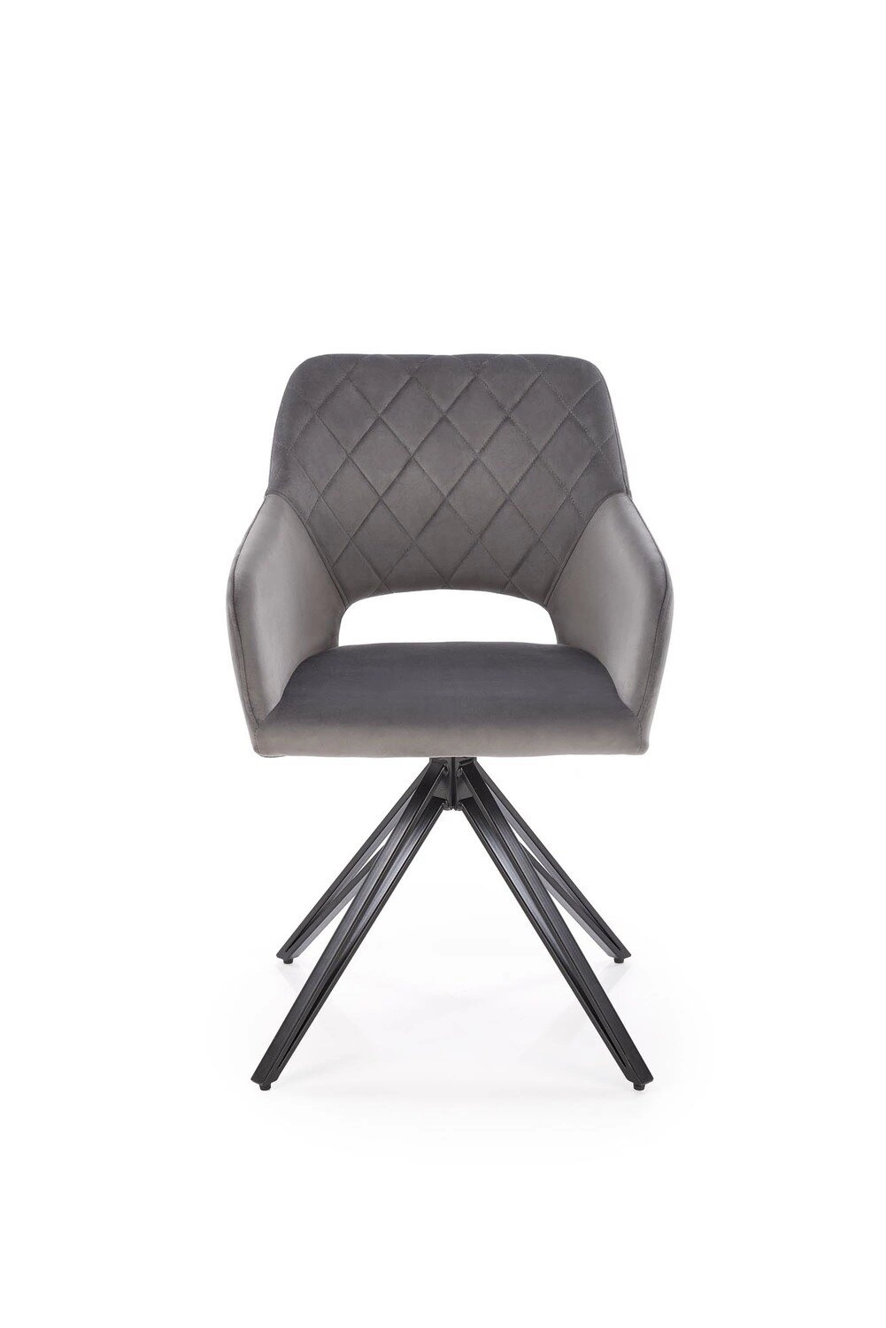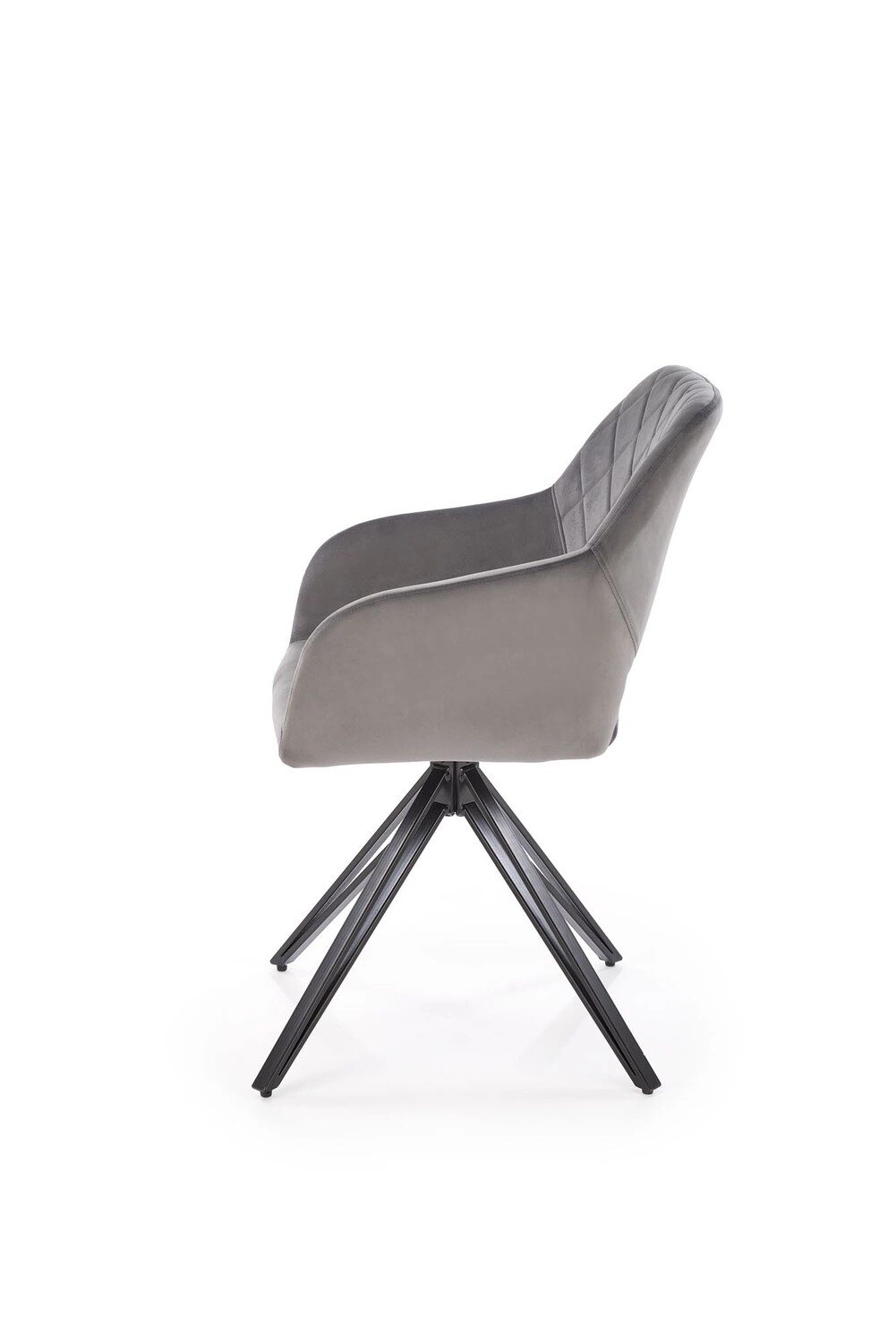 Krzesło obrotowe Cretas Velvet szary to połączenie luksusu, wygody i nowoczesnego designu, które doskonale sprawdzi się w różnych aranżacjach wnętrz. Wykonane z wysokiej jakości tkaniny velvetowej w eleganckim popielatym kolorze (BLUVEL 14) oraz wyposażone w cztery stabilne, czarne nogi malowane proszkowo, krzesło to emanuje stylem i trwałością. Nogi krzesła są zabezpieczone od spodu, co chroni podłogę przed uszkodzeniami, zapewniając jednocześnie stabilność mebla. Szerokie kubełkowe siedzisko z ozdobnymi pikowaniami na oparciu oraz podłokietniki gwarantują komfort użytkowania, a otwór między siedziskiem a oparciem zapewnia cyrkulację powietrza, co jest szczególnie przydatne podczas długiego użytkowania.