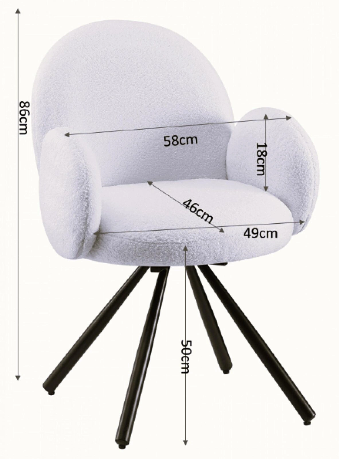 - Wykonane z tkaniny bouclé i stali malowanej proszkowo, co gwarantuje jego trwałość i wytrzymałość.