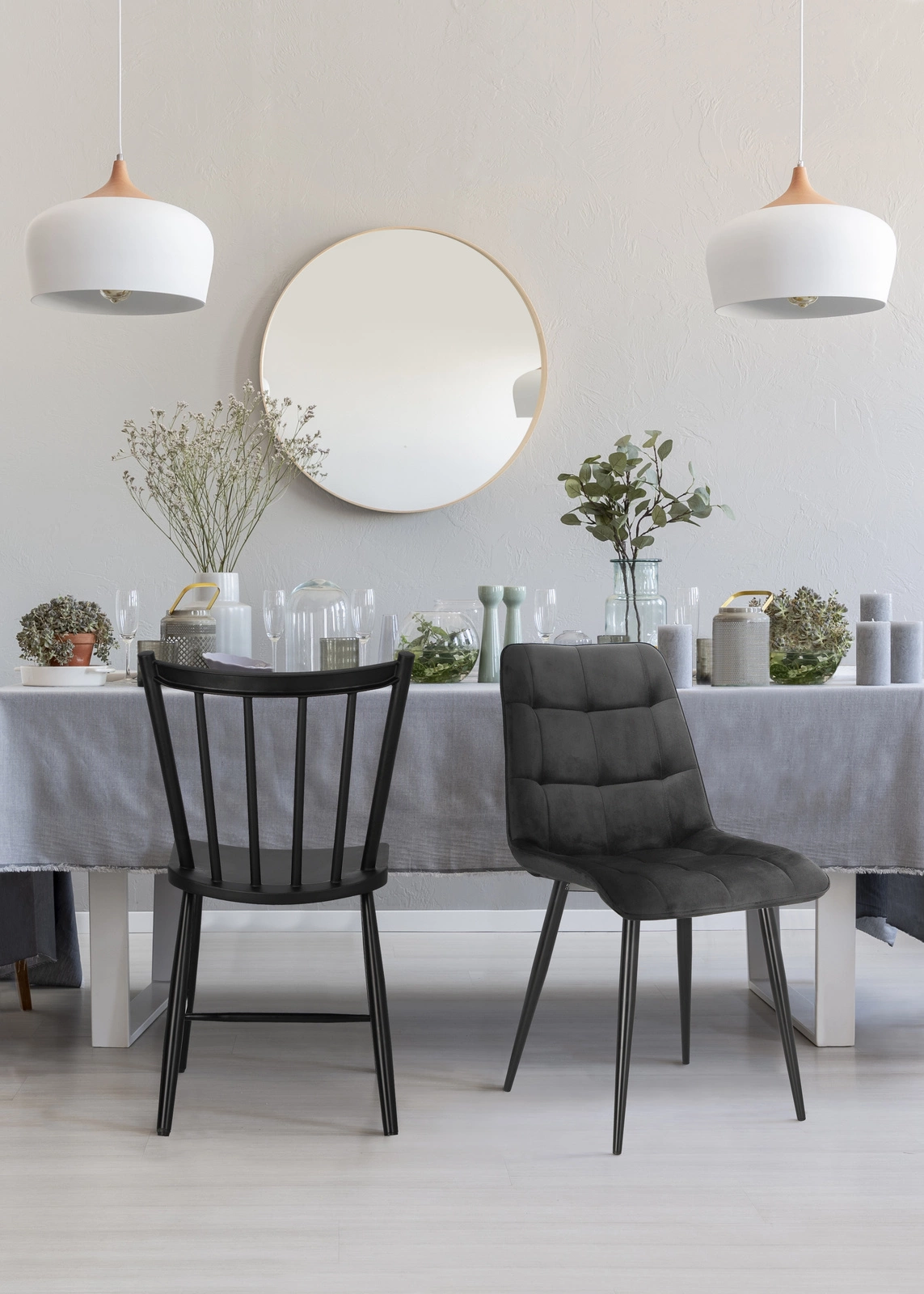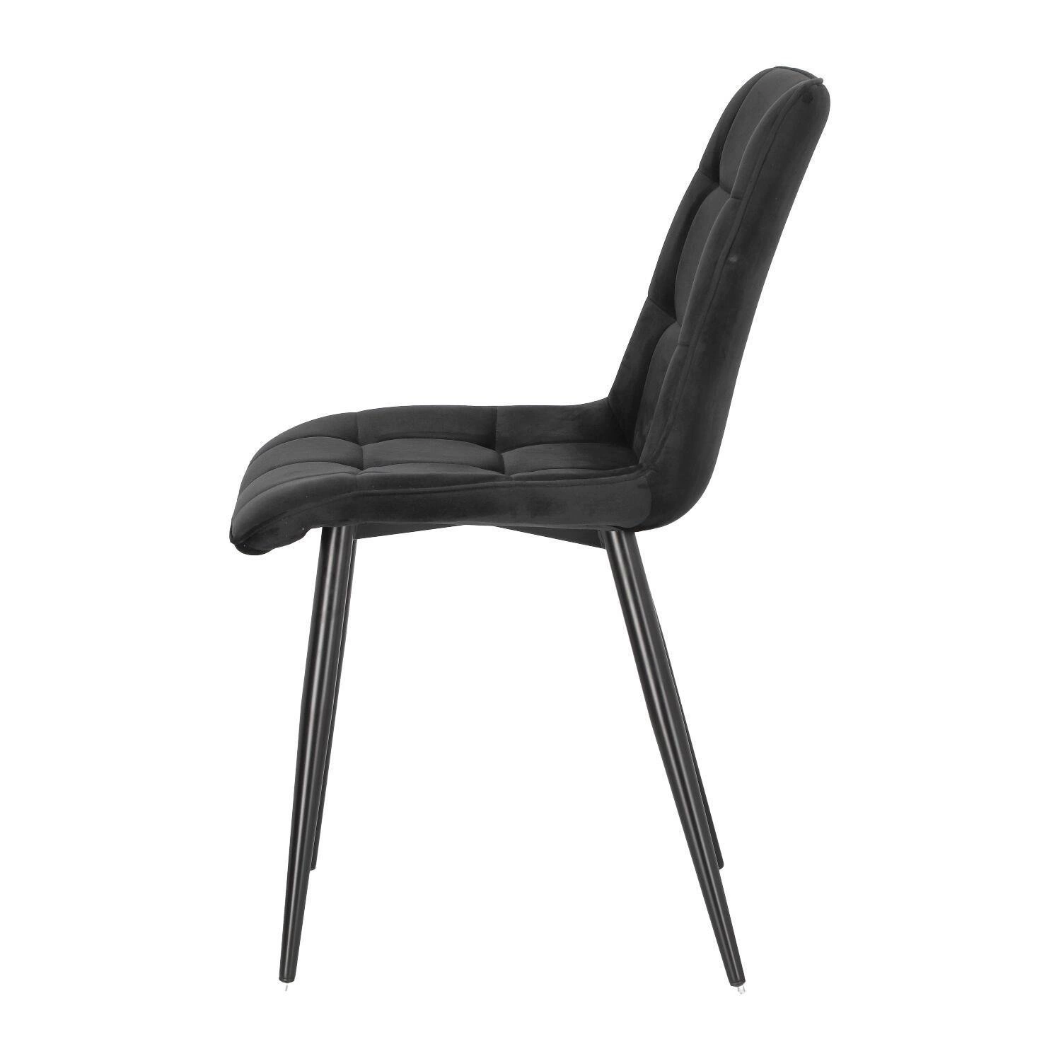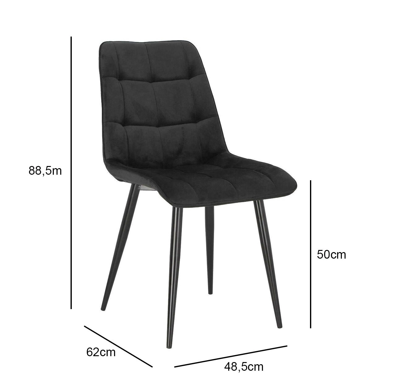 Każdy z nas posiada w swoim domu miejsce, które jest dla niego szczególnie ważne. Chęć zadbania o tę specjalną dla nas przestrzeń, sprawia, że decydujemy się na wybór oryginalnych mebli, które pozwolą na niepowtarzalną prezentację. Tapicerowane welwetowe krzesło PLAID w czarnym pomoże Ci zaaranżować przestrzeń, tak byś czuł się w niej wyjątkowo i swobodnie. Tapicerowane pikowane siedzisko krzesła jest niezwykle wygodne, dzięki wyprofilowanemu oparciu. Tkanina o wykończeniu welwetowym sprawia, że siedząc na niej, możemy poczuć się jak na przysłowiowej chmurce, gdyż cieszy nasz zmysł dotyku swoją miękkością i delikatnością. Krzesło nie posiada podłokietników, dzięki czemu wsuniemy je pod każdy stół, oszczędzając miejsce. Dlatego PLAID będzie doskonałym wyborem jako krzesło konferencyjne lub krzesło do jadalni z małym stołem. Metalowe nogi pomalowane proszkowo na czarno są odporne na uszkodzenia. Półmatowe wykończenie nóg, prezentuje się bardzo elegancko, dodając meblowi nowoczesnego wyglądu. Aby zabezpieczyć podłoże przed rysowaniem, nóżki krzesła zostały zakończone stopkami z tworzywa.