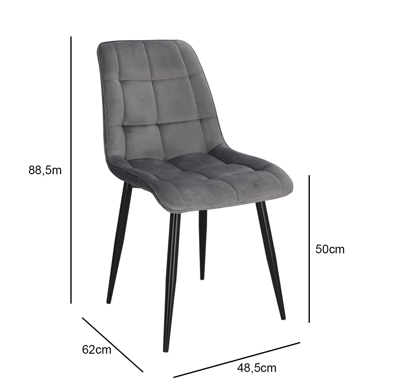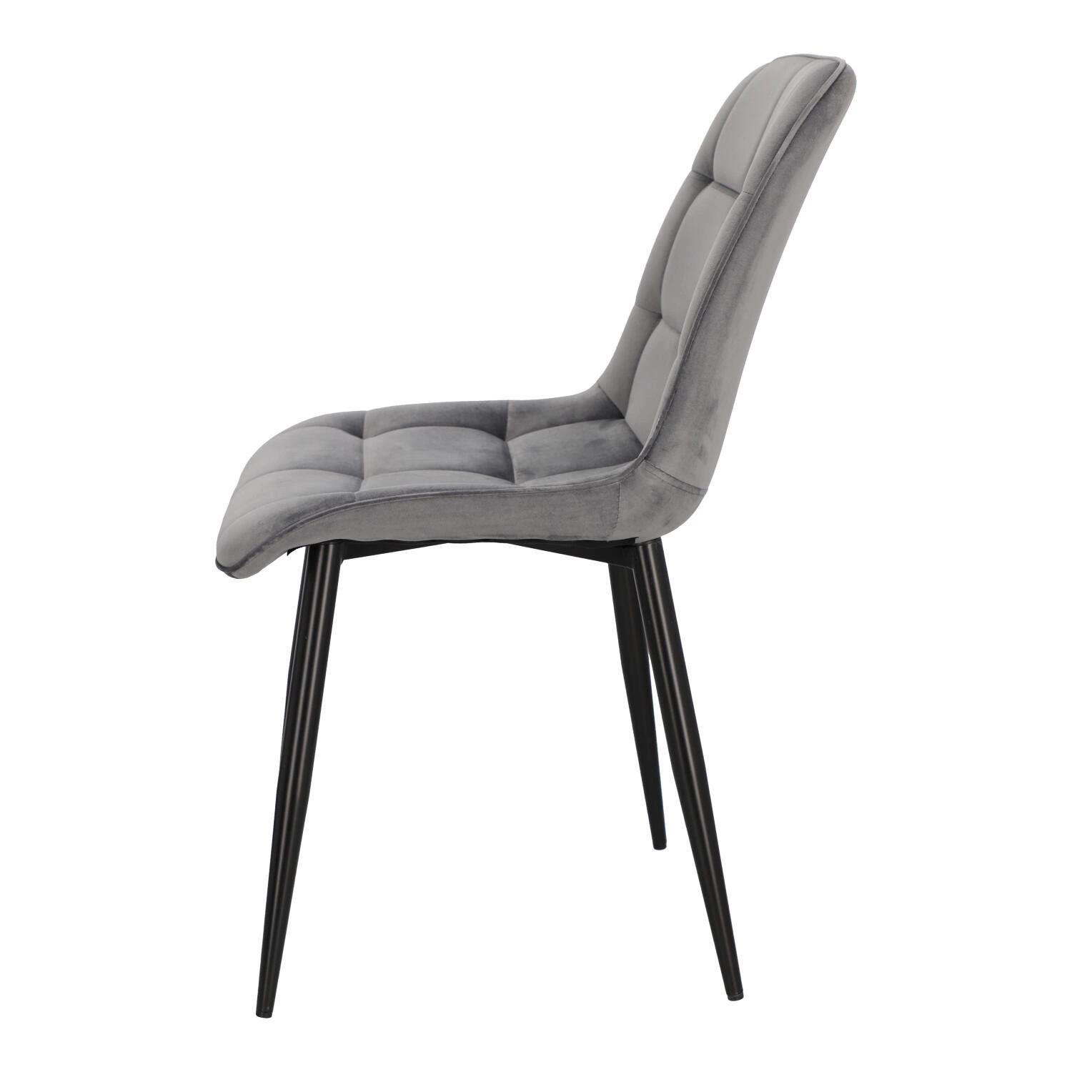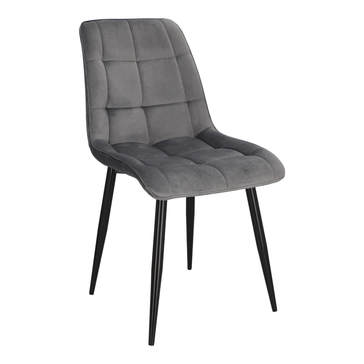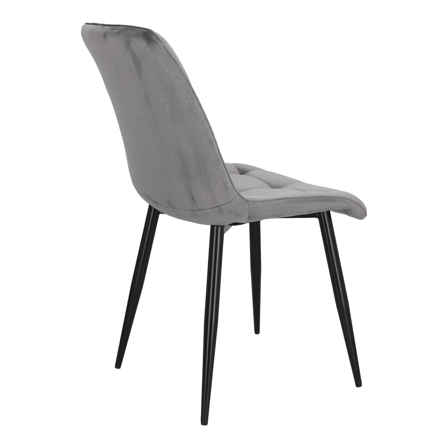 Każdy z nas posiada w swoim domu miejsce, które jest dla niego szczególnie ważne. Chęć zadbania o tę specjalną dla nas przestrzeń, sprawia, że decydujemy się na wybór oryginalnych mebli, które pozwolą na niepowtarzalną prezentację. Tapicerowane welwetowe krzesło PLAID w szarym pomoże Ci zaaranżować przestrzeń, tak byś czuł się w niej wyjątkowo i swobodnie. Tapicerowane pikowane siedzisko krzesła jest niezwykle wygodne, dzięki wyprofilowanemu oparciu. Tkanina o wykończeniu welwetowym sprawia, że siedząc na niej, możemy poczuć się jak na przysłowiowej chmurce, gdyż cieszy nasz zmysł dotyku swoją miękkością i delikatnością. Krzesło nie posiada podłokietników, dzięki czemu wsuniemy je pod każdy stół, oszczędzając miejsce. Dlatego PLAID będzie doskonałym wyborem jako krzesło konferencyjne lub krzesło do jadalni z małym stołem. Metalowe nogi pomalowane proszkowo na czarno są odporne na uszkodzenia. Półmatowe wykończenie nóg, prezentuje się bardzo elegancko, dodając meblowi nowoczesnego wyglądu. Aby zabezpieczyć podłoże przed rysowaniem, nóżki krzesła zostały zakończone stopkami z tworzywa.