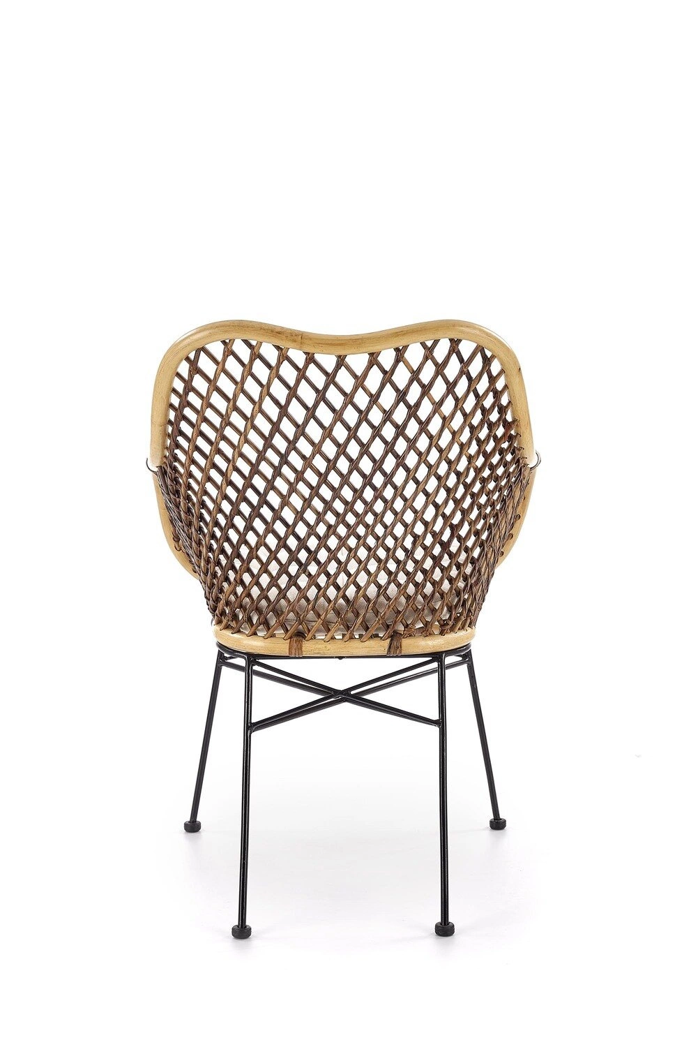 Czysta kwintesencja stylu boho – siedzisko stanowiące całość wraz z oparciem i podłokietnikami krzesła, zostało wykonane z naturalnego rattanu. Komfort użytkowania zapewnia miękka, beżowa poduszka, która znajduje się na siedzisku. Dzięki niej, możesz wygodnie spędzać czas przy stole. Dzięki swojemu naturalnemu odcieniowi oraz ciemnobrązowemu kolorowi, krzesło Mauri doskonale wpisuje się w styl boho, dodając wnętrzu niepowtarzalnego charakteru. Całość spoczywa na stalowej podstawie pomalowanej proszkowo na czarny kolor.