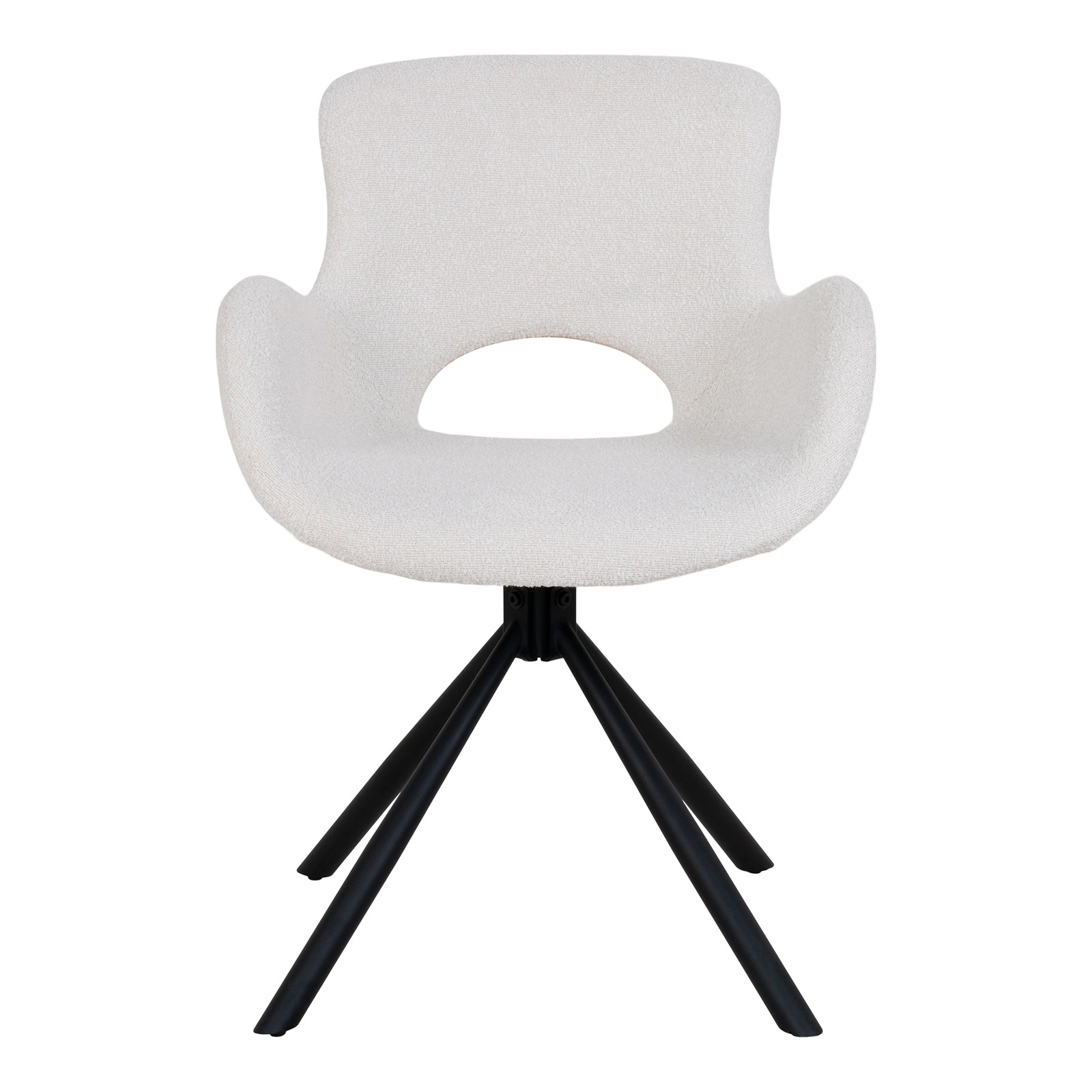 Krzesło Amorim wykończone jest tkaniną boucle, która nawiązuje do stylu japandi. Jest to styl, który łączy w sobie prostotę i minimalizm japońskiego designu z ciepłem i przytulnością skandynawskiego stylu. Kolor złamanej bieli nadaje krzesłu eleganckiego i ponadczasowego wyglądu.