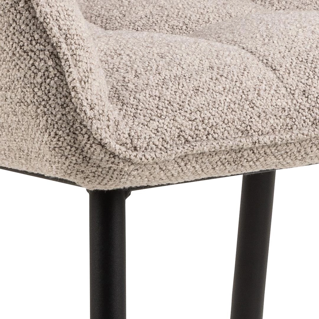 Krzesełko BRENDA to projekt, który oczaruje każdego miłośnika stylowego wnętrza. Solidna podstawa z metalu, malowana proszkowo na czarno, doskonale współgra z miękką tapicerką, tworząc harmonijny design. Rozległe siedzisko, przypominające fotel z podłokietnikami, wypełnione jest pianką poliuretanową, gwarantując wyjątkowy komfort podczas długotrwałego siedzenia. Tkanina o ciekawej strukturze i łukowatych przeszyć nadaje krzesłu niepowtarzalny charakter. Producent, dbając o jakość, wykorzystuje trwałe materiały, zapewniając nie tylko estetykę, ale także wygodę i trwałość krzesła.