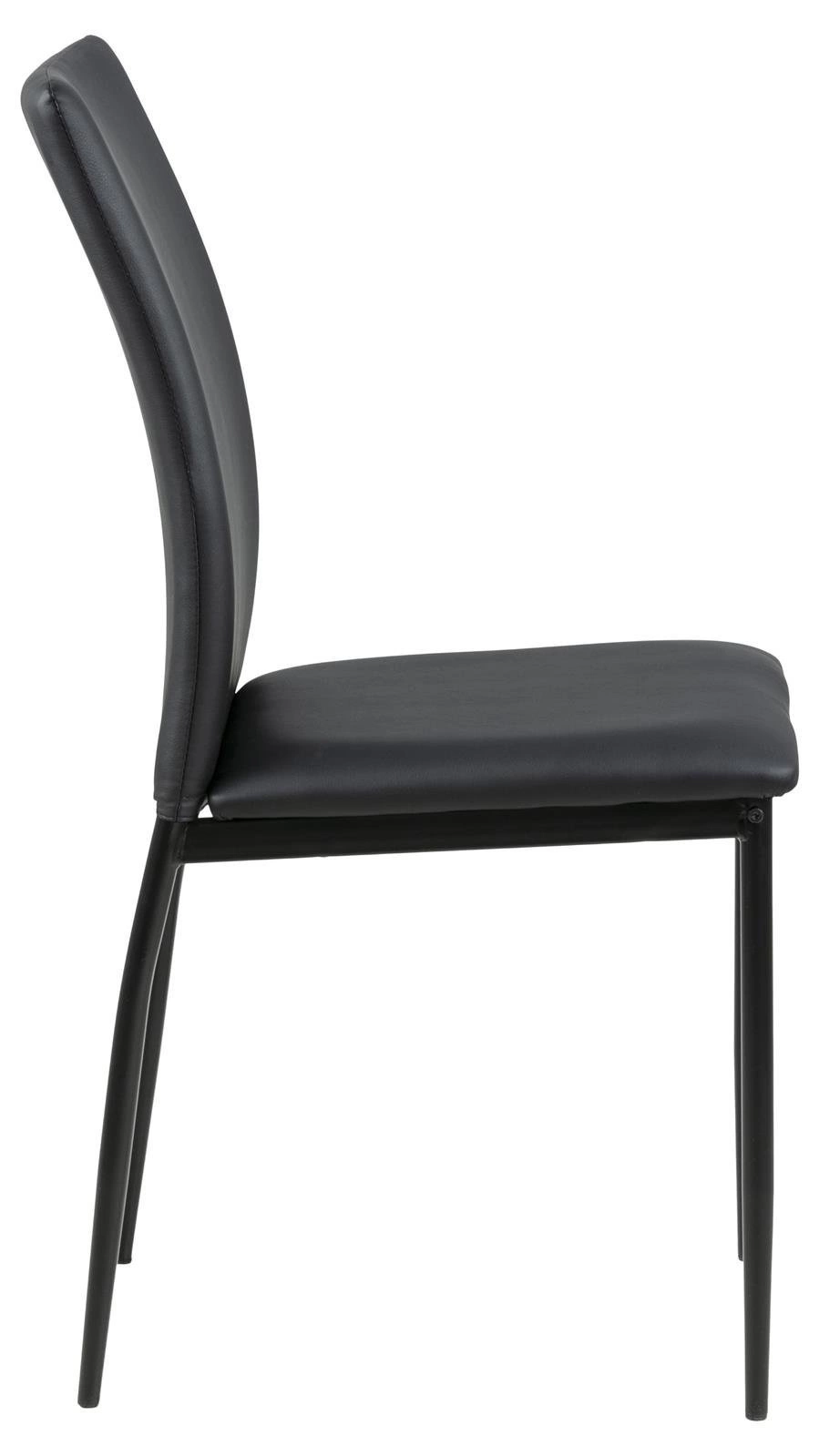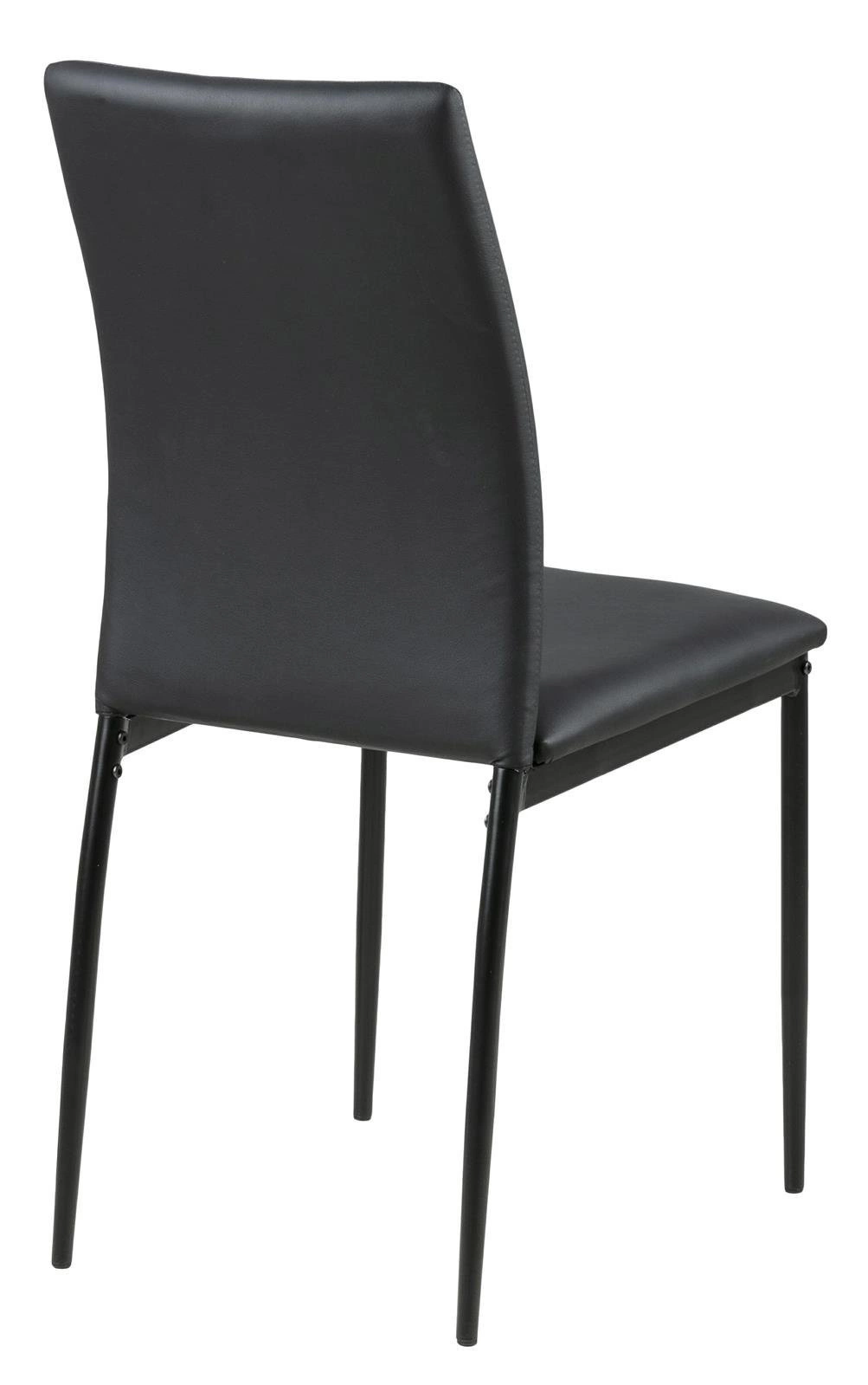 Krzesło Demina to krzesło, które doskonale sprawdzi się w przestrzeni hotelowej, komercyjnej czy domowej. Prosta forma krzesła sprawia, że krzesło dopasuje się do każdego stylu we wnętrzu. Siedzisko zostało obite mocną czarną eko skórą, nogi natomiast wykonane zostały z metalu pomalowanego proszkowo na czarno. Krzesło ma prostą i smukłą budowę, dzięki czemu dopasuje się do każdego nawet najbardziej nietypowego stołu.