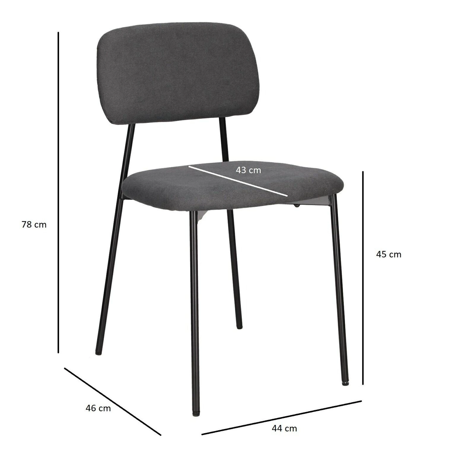Miękkie siedzisko oraz ergonomiczne oparcie gwarantują wygodne podparcie pleców podczas rodzinnych posiłków, długich spotkań czy pracy przy stole. Siedzisko na wysokości 45 cm pozwala zachować prawidłową pozycję ciała, co przekłada się na komfort nawet przy wielogodzinnym użytkowaniu. Metalowa podstawa zapewnia stabilność, a wysokiej jakości tkanina jest przyjemna w dotyku oraz łatwa do utrzymania w czystości – wystarczy przetrzeć ją wilgotną ściereczką, by przywrócić świeżość tapicerce.