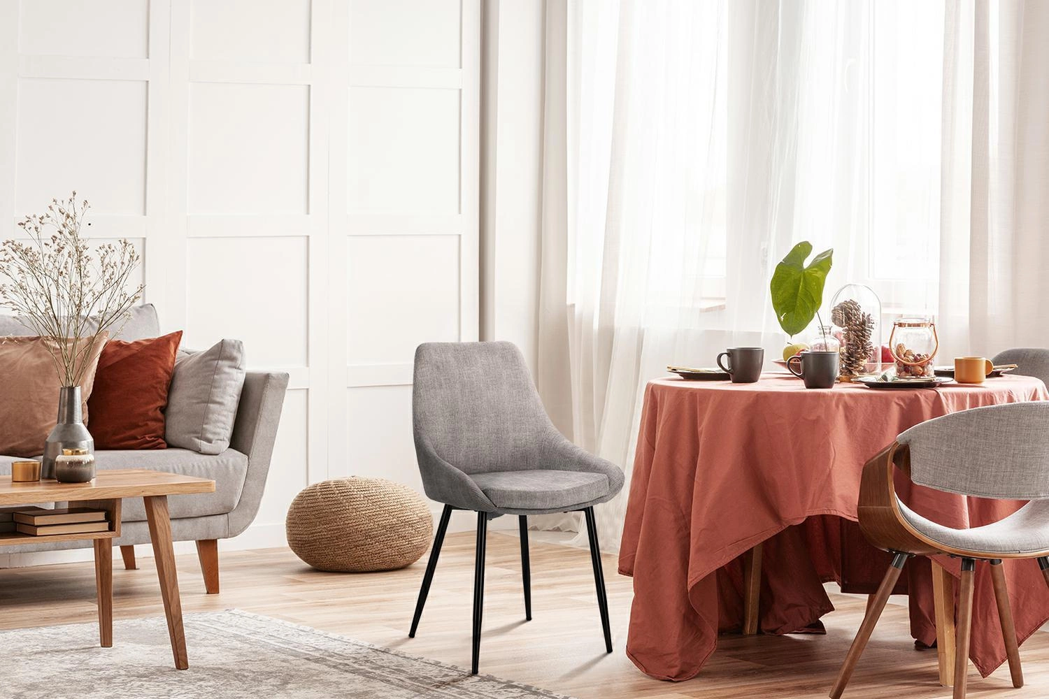 Krzesło Floyd to wygodne krzesło łączące w sobie modny minimalizm i nowoczesne wykończenia. Unikalne, miękkie siedzisko krzesła zostało umieszczone na smukłych nogach, dzięki czemu całość prezentuje się lekko i stylowo. Podstawę krzesła stanowią metalowe, pomalowane proszkowo na czarno, nogi gwarantujące konstrukcji stabilność. Na nóżkach umieszczone zostało miękkie siedzisko pokryte nowoczesną tkaniną przypominającą sztruks, która jest niezwykle przyjemna w dotyku, zwiększając tym samym poziom komfortu podczas użytkowania. Krzesło Floyd to modne krzesło do jadalni. Będzie ono również odpowiednim krzesłem do restauracji. Siedzisko mebla odznacza się komfortową formą, dzięki czemu w krześle można poczuć się naprawdę wygodnie.
