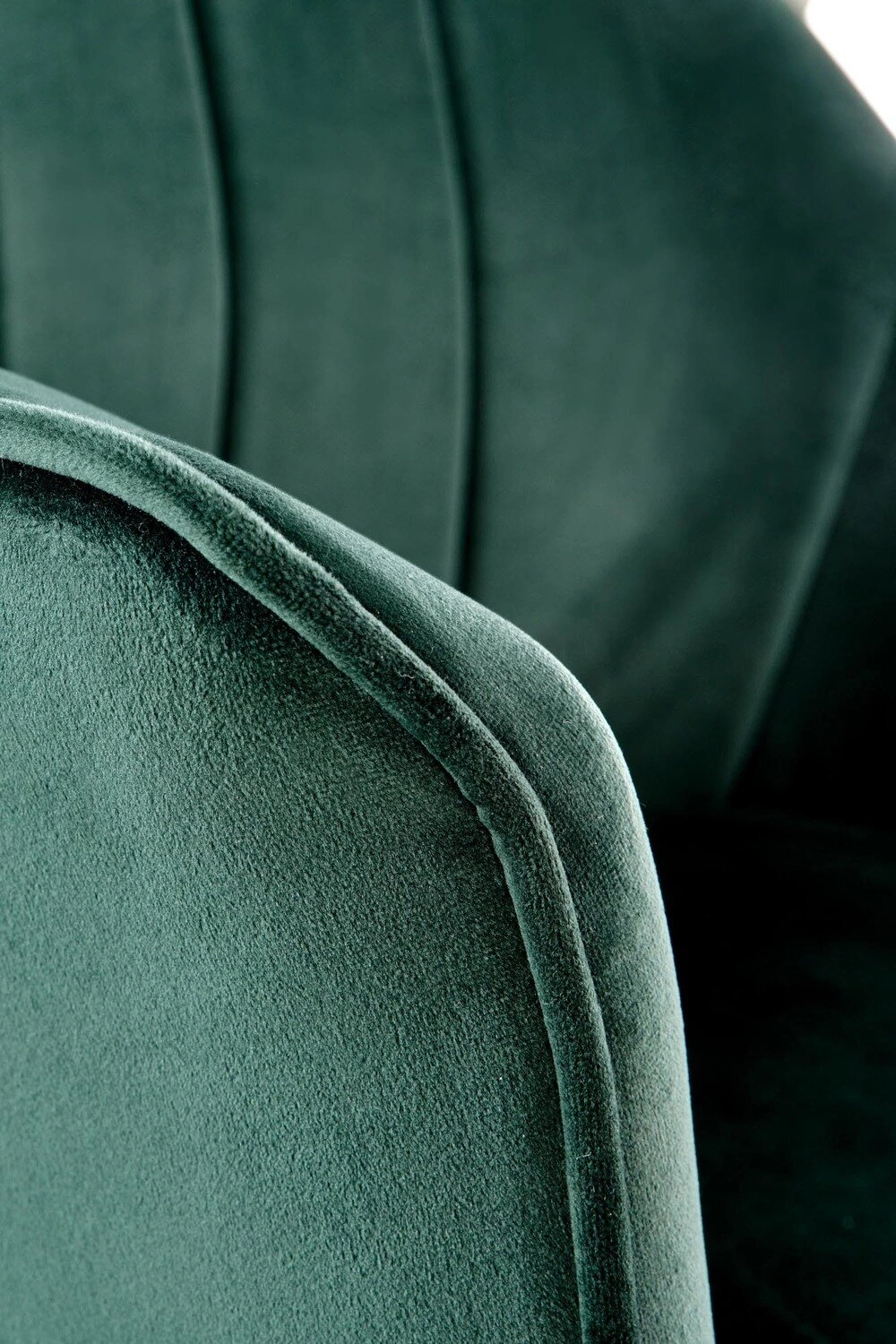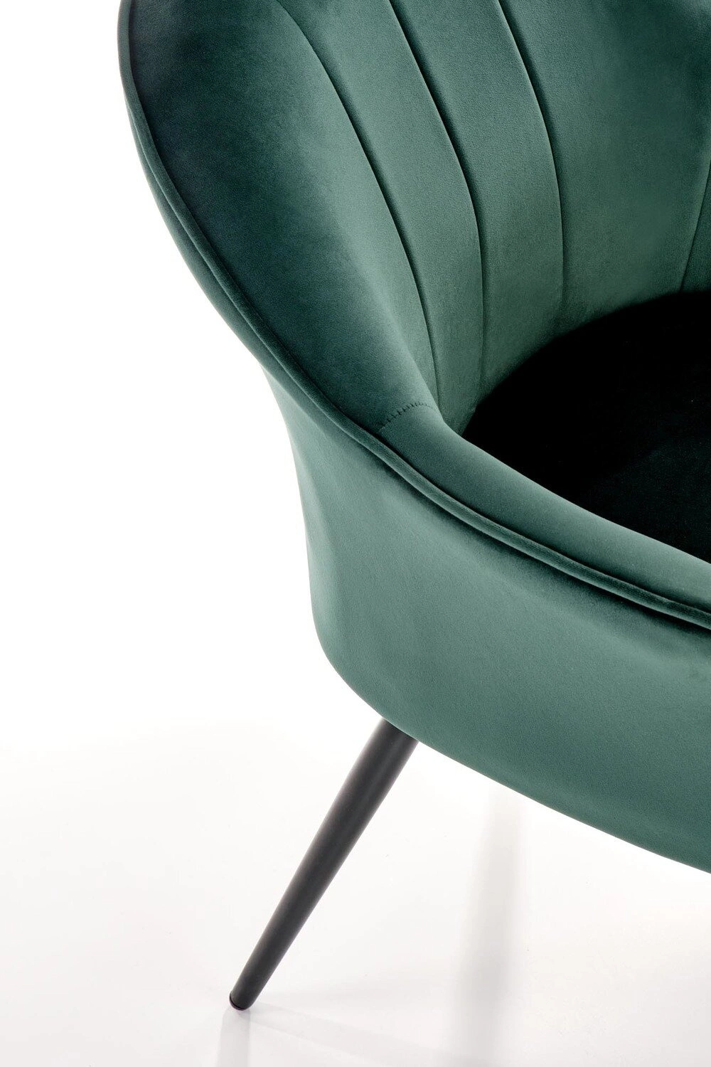 Nowoczesność na wysokim poziomie! Karine to krzesło, które wprowadzi nowoczesność, wygodę i elegancję do Twojego wnętrza. Wykonane z najwyższej jakości materiałów, nie tylko będzie doskonale pasować do Twojej jadalni, salonu czy sypialni przy toaletce, ale także zapewni Ci niezrównany komfort. Jego miękka i aksamitna tkanina velvet nie tylko dodaje mu elegancji, ale także jest przyjemna w dotyku, zapewniając Ci wyjątkowy komfort podczas siedzenia. Dodatkowo, podłokietniki sprawiają, że siedzenie staje się jeszcze bardziej wygodne, niezależnie od tego, czy korzystasz z krzesła przy stole w trakcie codziennych posiłków, czy też relaksujesz się, czy przygotowujesz w sypialni. Trwała konstrukcja z podstawą z malowanej proszkowo stali gwarantuje nie tylko długotrwałą użytkowanie krzesła, ale także jego stabilność. Smukłe i szeroko rozstawione nogi sprawiają, że mebel utrzymuje się pewnie na swoim miejscu, bez obaw o ewentualne przewrócenie. Oparcie krzesła zdobią pionowe przeszycia, które nadają mu niepowtarzalny wygląd. To detale, które przyciągają uwagę i dodają uroku nowoczesnemu wnętrzu. Dodatkowo, dostępny w kolorze zielonym, Karine ożywi Twoje wnętrze, dodając mu świeżości i energii. Co musisz wiedzieć przed zakupem? Nowoczesny design, który doskonale wpisuje się w nowoczesne wnętrza Wygodne siedzenie dzięki miękkiej i aksamitnej tkaninie velvet Elegancki i luksusowy wygląd, który dodaje uroku pomieszczeniu