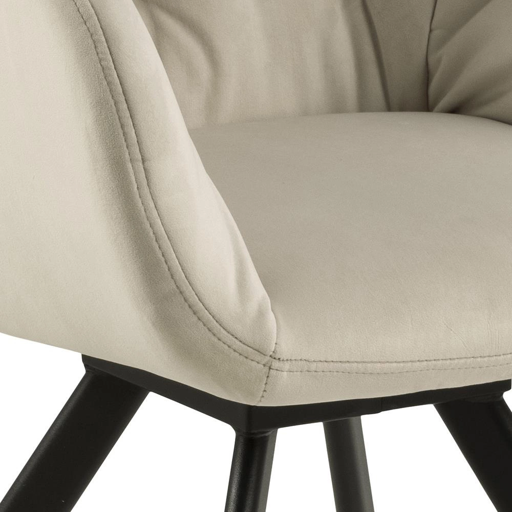 Idealne krzesła powinny zapewniać komfort, zaspokajać gusta, a także dbać o odpowiednią postawę. Wyjątkowe krzesło tapicerowane Lola łączy w sobie te cechy, które zmieniają je w model idealny. Jego podstawę stanowią lekkie w formie, jednak solidne metalowe nogi malowane proszkowo na czarno, które doskonale komponują się z miękką welwetową tkaniną VIC Fabric Sand A80. Krzesło posiada podłokietniki, które z oparciem i siedziskiem tworzą spójną całość. Na wewnętrznej stronie krzesła znajduje się pikowanie, które dodaje mu stylu.