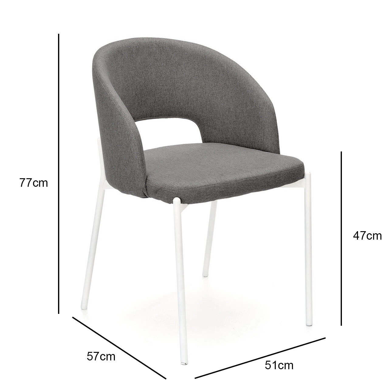 Krzesło tapicerowane Marthe szare Intesi to połączenie nowoczesnej wygody z dopracowanym designem, które doskonale sprawdzi się w jadalni, salonie lub kuchni. Wyróżnia się miękkim siedziskiem z tkaniny w głębokim, szarym odcieniu oraz stabilną podstawą z białej stali malowanej proszkowo. Dzięki ergonomicznie wyprofilowanemu oparciu i podłokietnikom zapewnia komfort nawet podczas długich spotkań przy stole, a wysokość siedziska 47 cm czyni je idealnym wyborem do codziennego użytku.