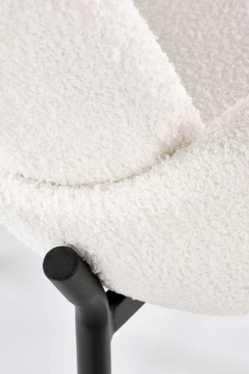 Wyjątkowe rozwiązanie dla każdego wnętrza Krzesło Perrol bouclé to niezwykle elegancki mebel, który nie tylko zachwyca swoim wyglądem, ale również gwarantuje niezwykły komfort i trwałość. Wykonane z trwałej tkaniny bouclé o kremowej barwie oraz solidnej stali malowanej proszkowo na czarno, to krzesło, które stworzy przytulną i stylową atmosferę w Twoim wnętrzu. Jednym z największych atutów tego krzesła jest tkanina bouclé, która nadaje mu miękką i puszystą fakturę dzięki charakterystycznym supełkom. To sprawia, że siedzenie na tym krześle jest niezwykle przyjemne i relaksujące. Dodatkowo, tkanina jest trwała i łatwa w czyszczeniu, dzięki czemu krzesło Perrol bouclé będzie wyglądać jak nowe przez wiele lat. Stalowa podstawa, malowana proszkowo na czarno, to gwarancja stabilności i trwałości tego mebla. Bez względu na to, jak często będziesz korzystać z tego krzesła, możesz być pewien, że będzie ono służyć Ci przez wiele lat bez żadnych problemów. Krzesło Perrol doskonale wpisuje się w różne style i aranżacje wnętrz. Bez względu na to, czy masz nowoczesne, czy klasyczne wnętrze, to krzesło będzie w nim wyglądać doskonale. Możesz umieścić je w jadalni, gdzie będzie stanowić eleganckie uzupełnienie do stołu, w salonie, gdzie będzie zapraszać do odpoczynku, sprawdzi się nawet w sypialni przy toaletce, gdzie będzie dodawać uroku i stylu. O tym warto pamiętać! Elegancki i stylowy wygląd, który dodaje uroku i charakteru wnętrzu Wygodne oparcie i podłokietniki zapewniają komfort podczas siedzenia Trwała stalowa podstawa malowana proszkowo na czarno gwarantuje stabilność i trwałość mebla