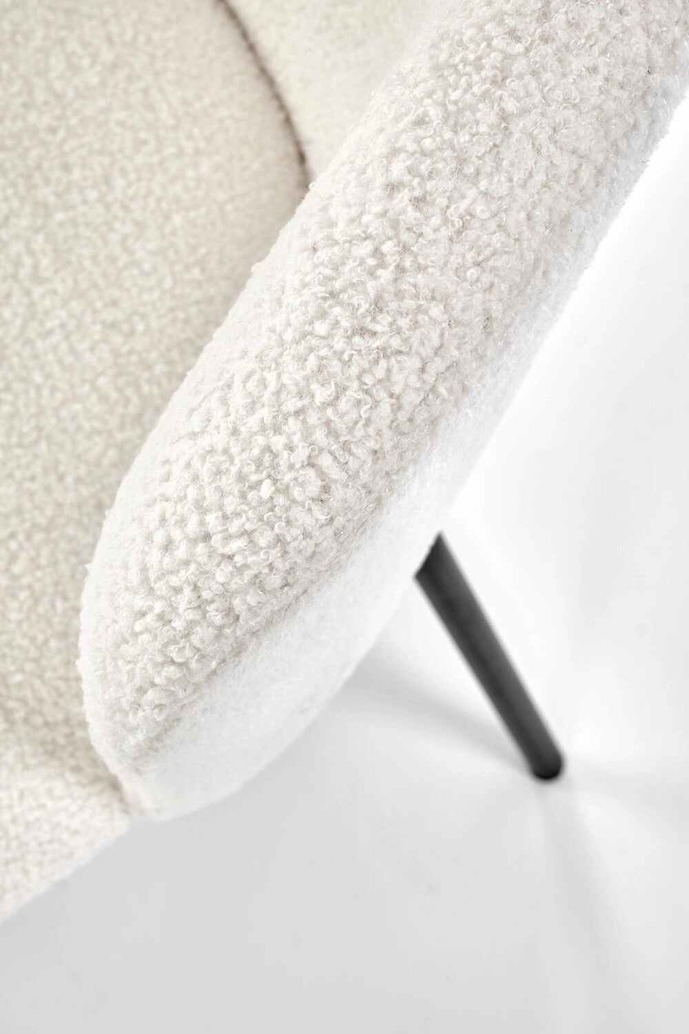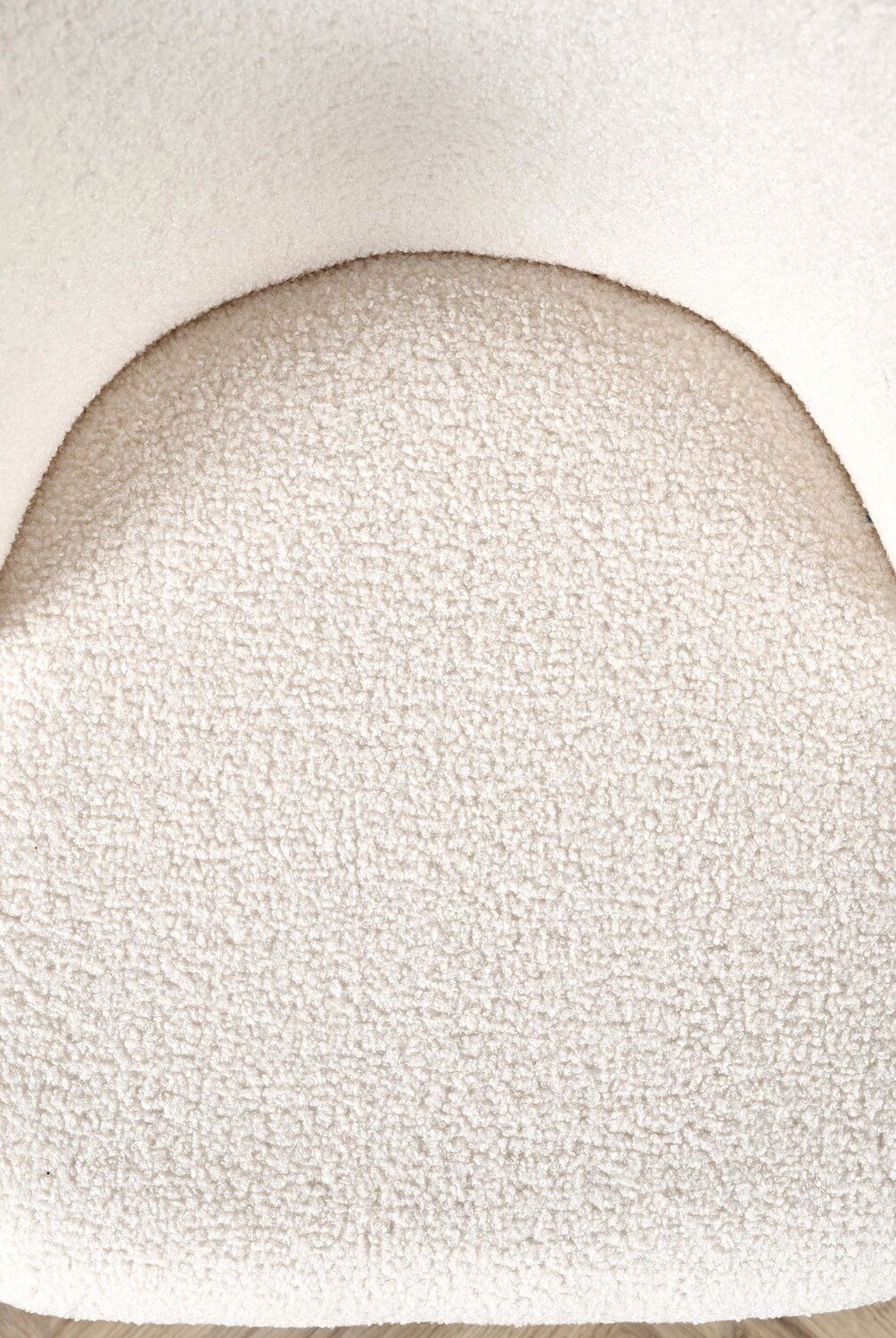 Krzesło Vanda: Idealny dodatek do skandynawskiego wnętrza Krzesło Vanda to połączenie elegancji i funkcjonalności, które wspaniale uzupełni zarówno skandynawskie, jak i nowoczesne wnętrza. Wykonane z wysokiej jakości materiałów, prezentuje się wyjątkowo w kolorze kremowym dla siedziska i czarnym dla podstawy. Stal malowana proszkowo nadaje meblowi trwałość i nowoczesny wygląd, podczas gdy tkanina boucle, użyta do tapicerki, zachwyca swoją miękkością i przyjemnością w dotyku. Krzesło Vanda posiada cztery smukłe nogi, które nadają mu lekkości i finezji. Kubełkowe siedzisko i oparcie zapewniają użytkownikowi komfort i mnóstwo miejsca, a szerokie siedzisko i zaokrąglone oparcie dodatkowo wspierają wygodę, zwłaszcza dla ramion. To mebel, który nie tylko spełnia swoją funkcję użytkową, ale także stanowi efektowny element dekoracyjny. Idealne jako krzesło do stołu jadalnianego, Vanda doskonale komponuje się również jako eleganckie krzesło do toaletki. Jego minimalistyczny design sprawia, że pasuje do różnorodnych aranżacji, podkreślając jednocześnie gust i styl właściciela. Co warto wiedzieć przed zakupem? Krzesło Vanda łączy w sobie elegancję i funkcjonalność, prezentując wyjątkowy design. Stal malowana proszkowo i miękka tkanina boucle zapewniają trwałość i komfort użytkowania. Idealne jako krzesło do stołu jadalnianego lub do toaletki, Vanda doskonale sprawdzi się w różnych wnętrzach. Kubełkowe siedzisko, szerokie oparcie i zaokrąglone elementy stanowią ergonomiczne rozwiązania, zapewniające wygodę. Mebel doskonale wpisuje się w trendy skandynawskie i nowoczesne aranżacje, dodając im subtelności i finezji.