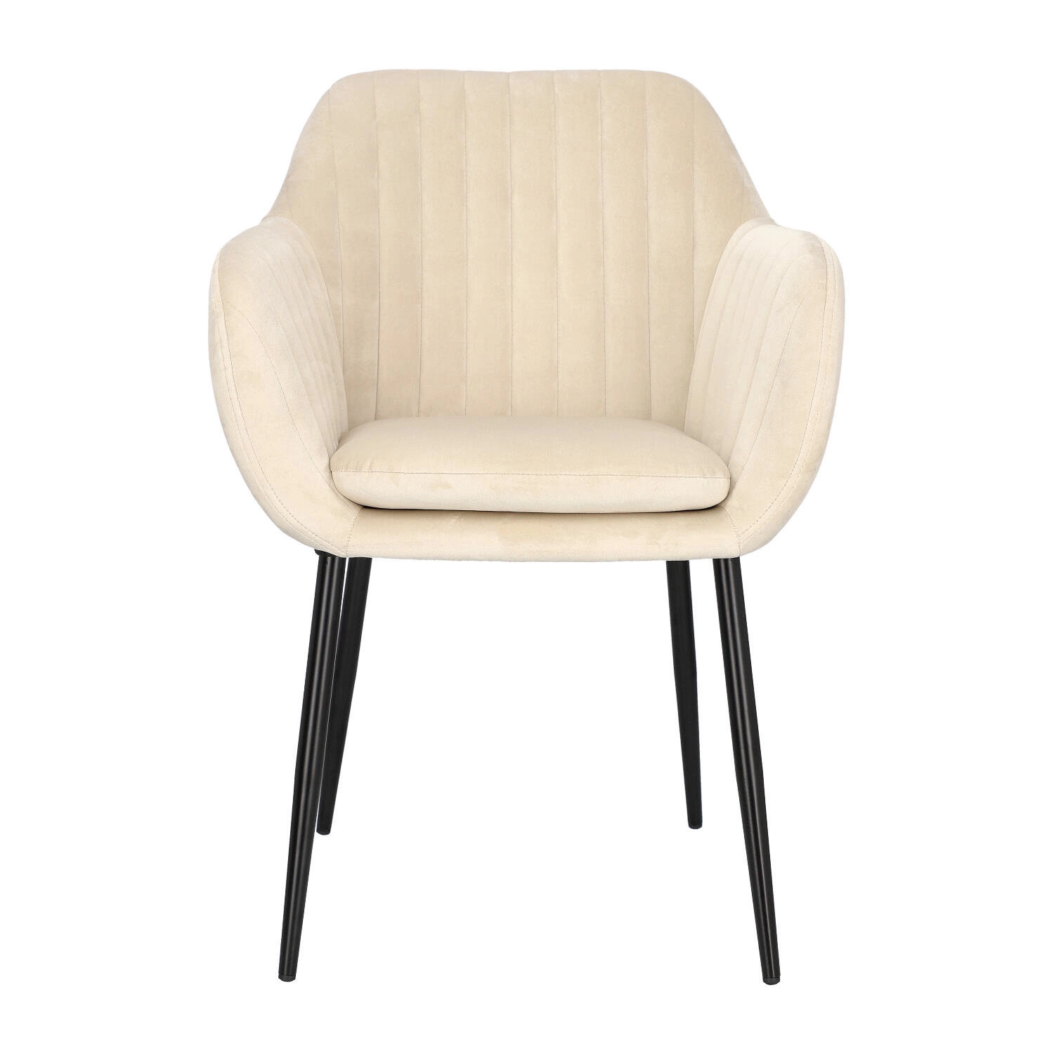 Seria EMILIA VELVET to niezwykle efektowna kolekcja, która odzwierciedla istotę uwielbianego na całym świecie stylu skandynawskiego. Stylistyka scandi łączy ze sobą elementy naturalne takie jak drewno z eleganckimi, przyjemnymi w dotyku materiałami. Tapicerowane siedzisko krzesła EMILIA VELVET zostało wykonane z najwyższej jakości tkaniny VIC. Aby wpasować się w aktualne trendy wnętrzarskie, zastosowano tkaninę o wykończeniu welurowym, dodatkowo podkreśloną estetycznym pikowaniem w postaci pionowych szwów. Siedzisko z podłokietnikami w doskonały sposób zadba o nasz komfort podczas pracy lub spożywanego posiłku. Podstawa to cztery metalowe nogi pomalowane na kolor czarny, które idealnie komponują się z intensywną głębią dostępnej kolorystyki krzeseł EMILIA VELVET.
