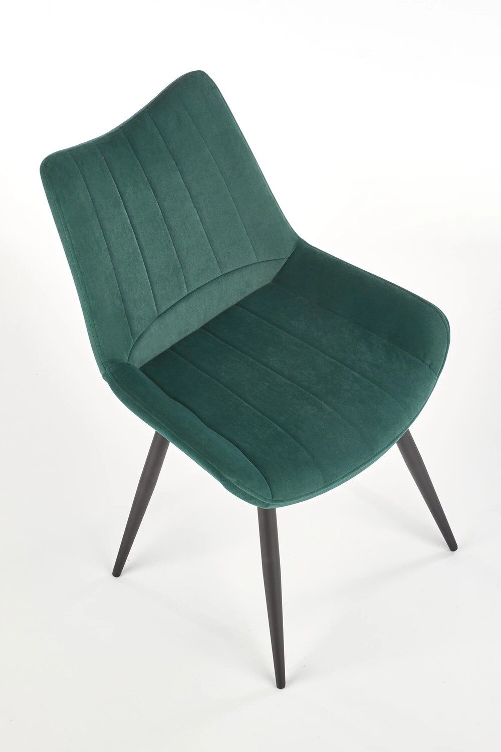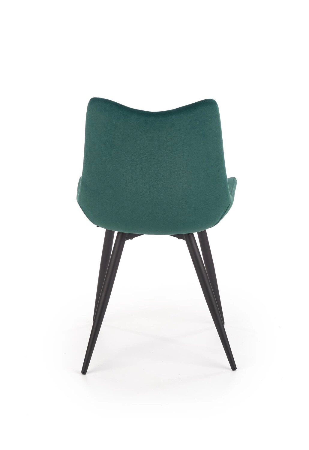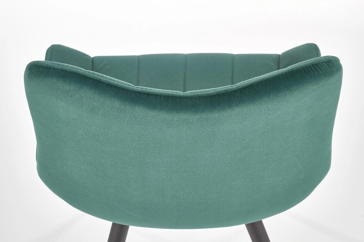 Stalowa konstrukcja malowana proszkowo na półmatowy czarny kolor gwarantuje trwałość i odporność na uszkodzenia. Krzesło wytrzymuje obciążenie do 100 kg, co zapewnia bezpieczeństwo użytkowania przez długi czas. Połączenie welurowej tkaniny z solidną podstawą czyni ten mebel nie tylko efektownym, ale i funkcjonalnym wyborem do każdego domu.