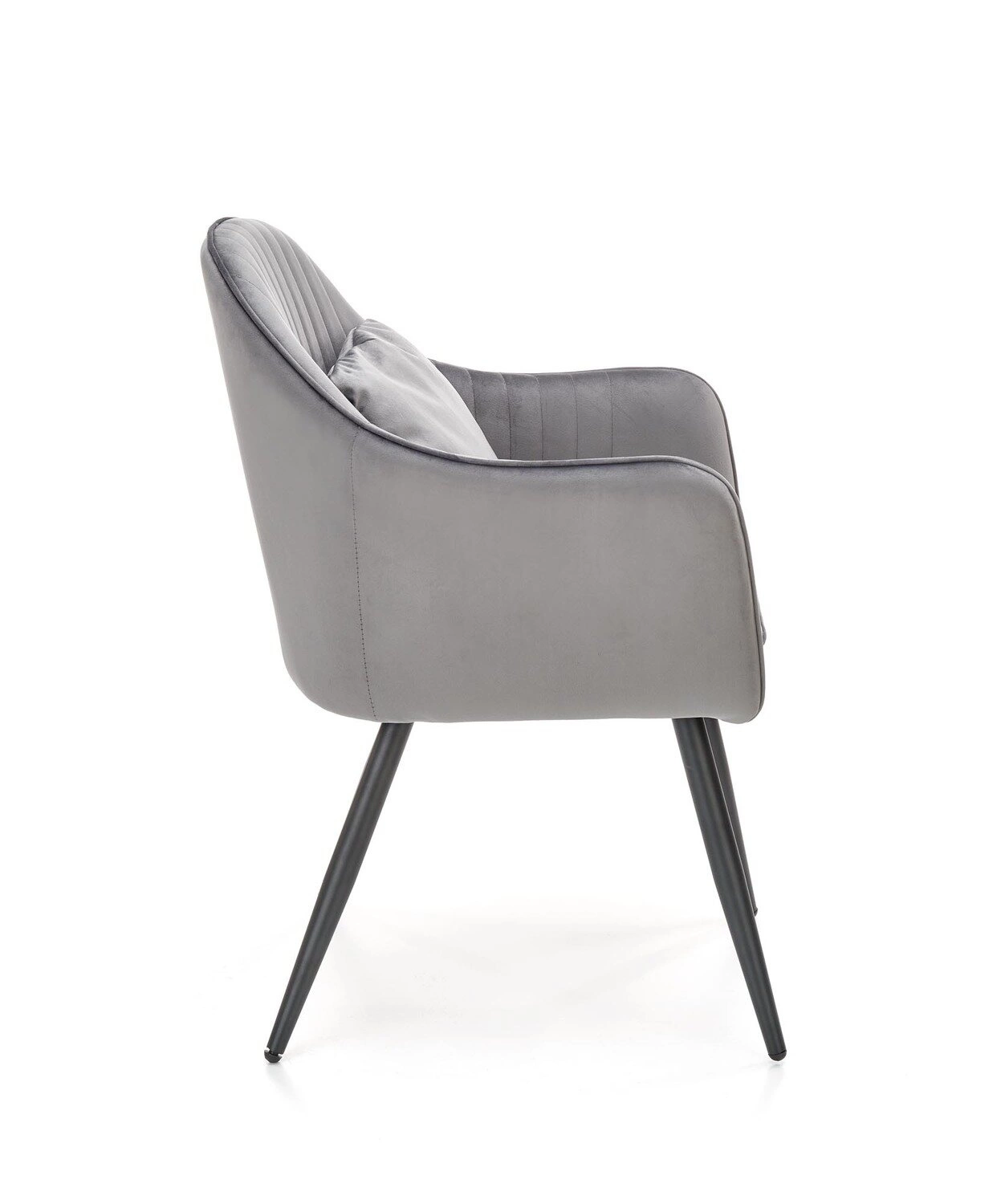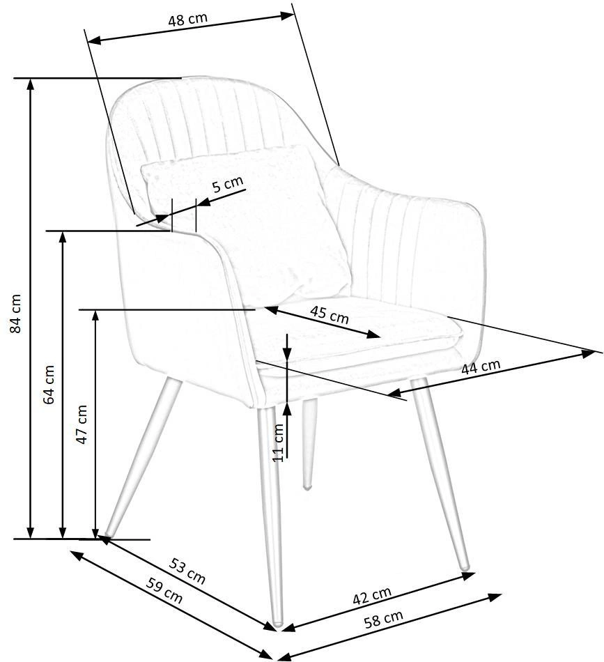 Elegancja i komfort w stylu glamour Krzesło Jovite to wyjątkowe dzieło, które łączy w sobie nowoczesny design, elegancję oraz wyjątkowy komfort użytkowania. To mebel, który spełnia zarówno funkcjonalne, jak i estetyczne oczekiwania, doskonale nadający się do jadalni, salonu czy nawet sypialni przy toaletce. Jovite cechuje się zastosowaniem materiałów najwyższej jakości. Aksamitna tkanina velvet, obita na siedzisku, jest niezwykle miękka w dotyku, co zapewnia wyjątkowy komfort. Stalowa podstawa, malowana proszkowo, gwarantuje trwałość i stabilność, dzięki smukłym, szeroko rozstawionym nogom. Dodatkowy komfort użytkowania zapewniają podłokietniki oraz poduszka umieszczona na siedzisku. Dodatkowo, oparcie krzesła zdobione jest pionowymi przeszyciami, nadając mu niepowtarzalny charakter. Dostępność w dwóch modnych kolorach pozwala dostosować krzesło do własnych preferencji i stylu wnętrza. Krzesło Jovite to nie tylko mebel, to również element dekoracyjny, który dodaje elegancji i nowoczesności każdemu pomieszczeniu. Upewnij się, że to dobry wybór! Jovite to eleganckie krzesło łączące wygodną tkaninę velvet z trwałą stalową podstawą Smukłe nogi i podłokietniki zapewniają stabilność i komfort użytkowania Pionowe przeszycia na oparciu nadają meblowi wyjątkowy charakter