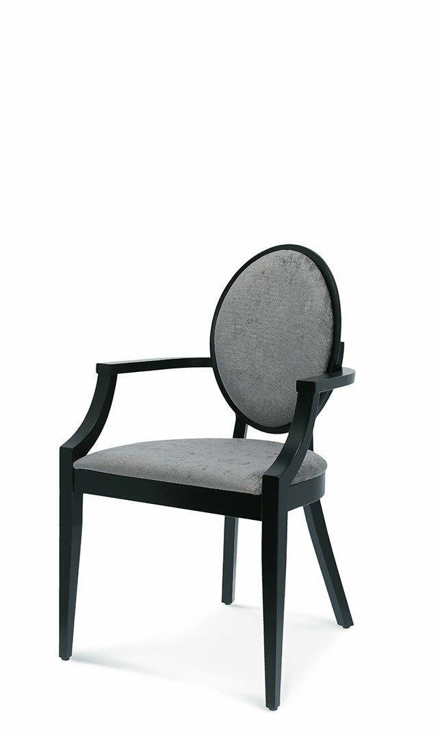 Krzesło tapicerowane z podłokietnikami Diana marki FAMEG to ponadczasowy wybór do jadalni i salonu, który łączy personalizowane wykończenie, wygodę oraz solidne bukowe drewno. Dzięki szerokości 59 cm, głębokości 58,5 cm i wysokości całkowitej 94,5 cm idealnie sprawdzi się zarówno przy stole, jak i w kąciku wypoczynkowym. Komfort użytkowania zapewniają ergonomiczne podłokietniki oraz miękkie siedzisko, tapicerowane wysokiej klasy tkaniną w wybranym przez Ciebie kolorze.