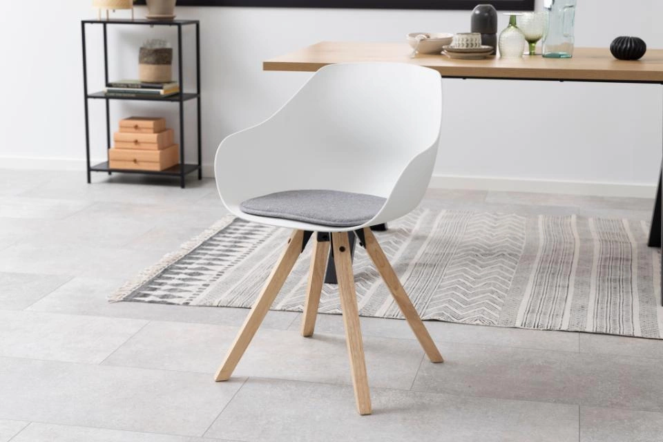 Krzesło Tina Wood wykonane zostało w polipropyleny oraz drewna kuczukowego. Drewniana podstawa została dodatkowo poddana procesowi olejowania co sprawia, że drewno jest zabezpieczone. Metalowy stelaż podtrzymuje stabilnie siedzisko dzięki czemu użytkowanie go jest wyjątkowo komfortowe. Do krzesła dodana została wygodna poduszka w tkaninie Malmo 90. Poduszka jest położona na siedzisku luźno, dzięki czemu możemy ją zdjąć na przykład do prania, a krzesło bez poduszki nadal będzie dbrze wyglądać we wnętrzu.