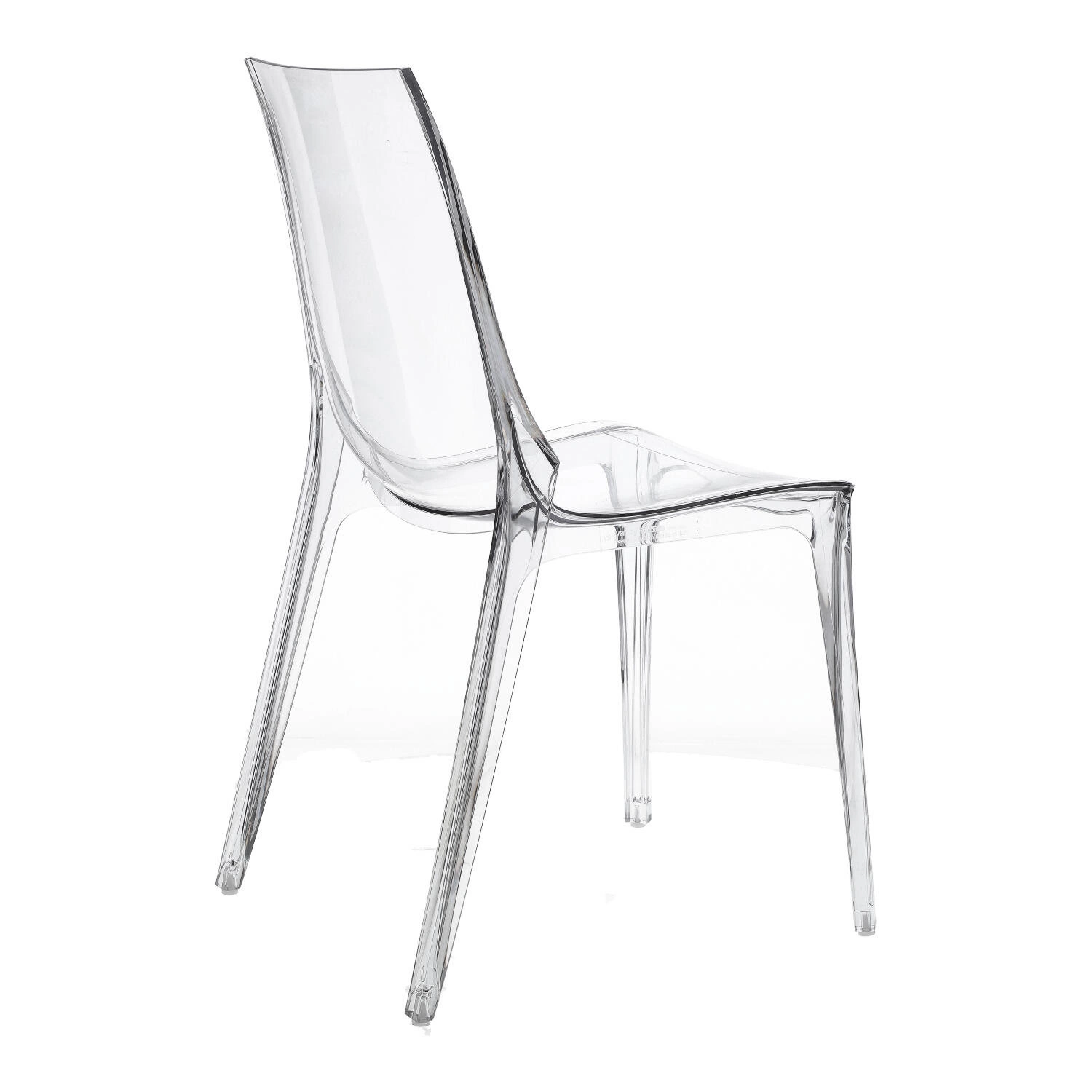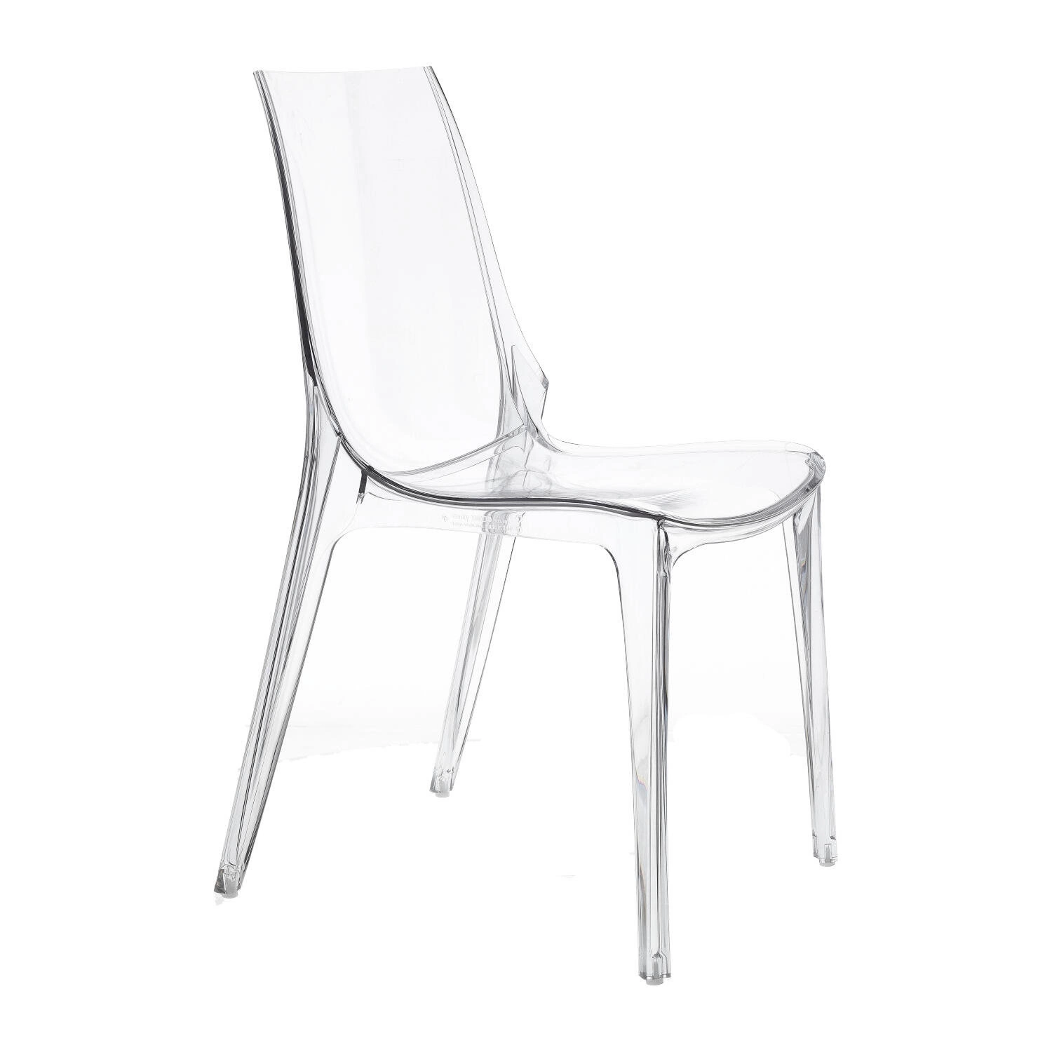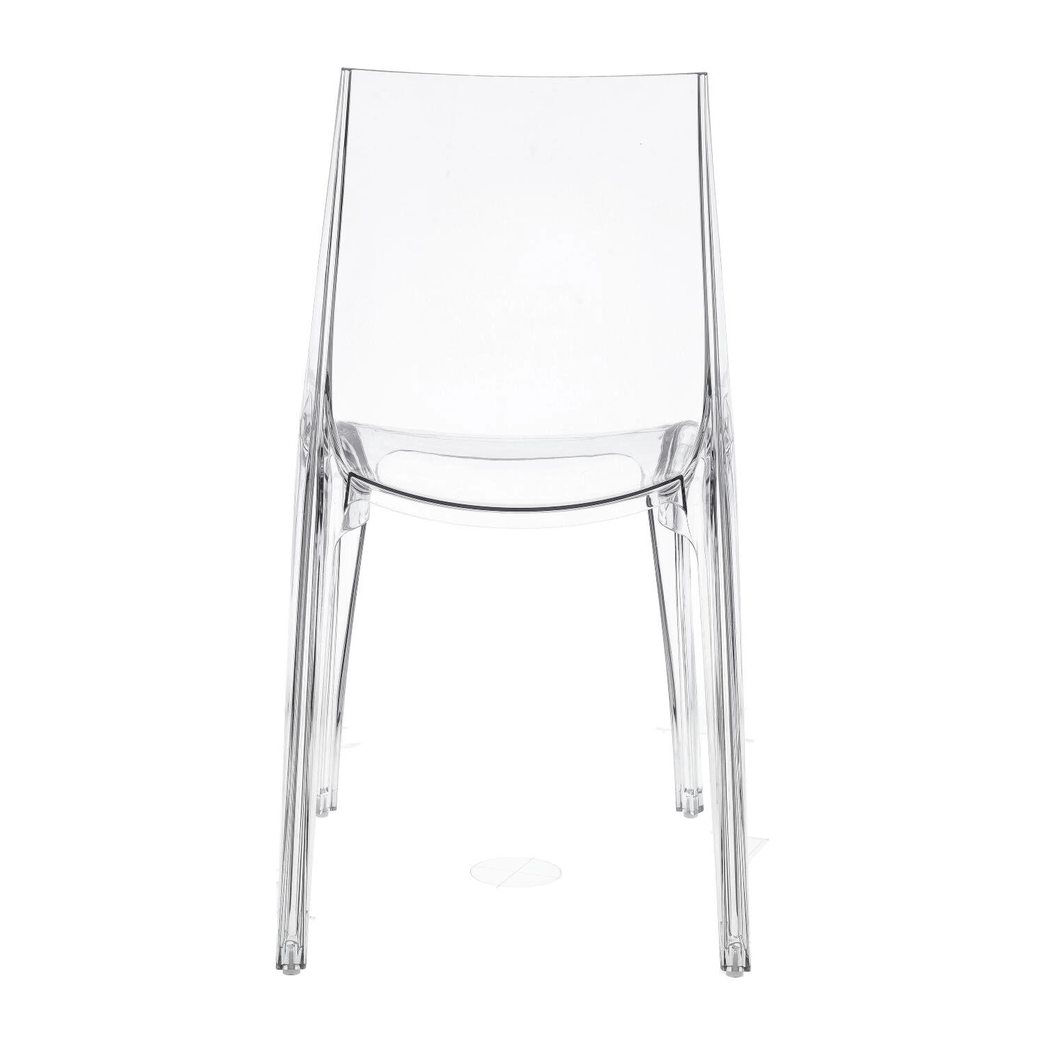 Krzesło Vanity to kolejna odsłona niezwykle modnych transparentnych siedzisk. To definicja współczesnego stylu modern glamour, który na stałe zagościł w europejskich jadalniach i sypialniach. Jeśli poszukujesz oryginalnego krzesła do stołu lub funkcjonalnego siedziska do toaletki, Vanity jest propozycją właśnie dla Ciebie! Wykonane z poliwęglanu, w dwóch wersjach, bez lub z podłokietnikami gwarantuje łatwość w czyszczeniu i wytrzymałość. Materiał, z którego wykonano siedzisko, umożliwia użytkowanie również na zewnątrz, dzięki czemu Vanity może stać się oryginalnym krzesłem na balkon lub do ogrodu. Możliwość sztaplowania aż do 8 sztuk na sobie sprawdzi się szczególnie we wnętrzach komercyjnych takich jak restauracja lub hotel.