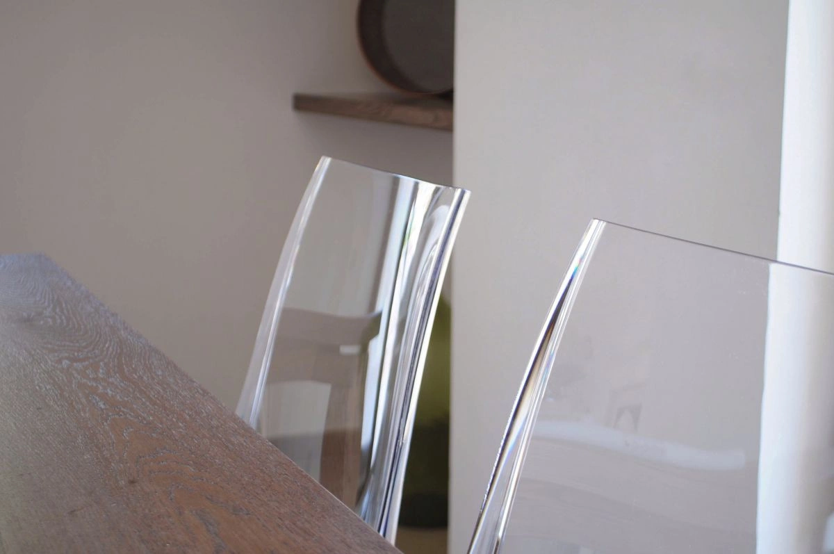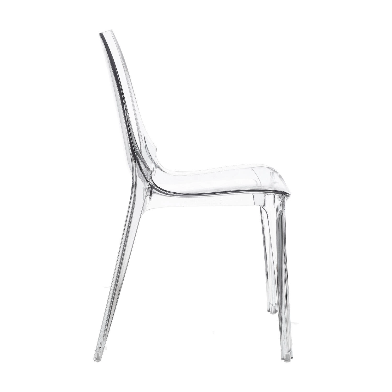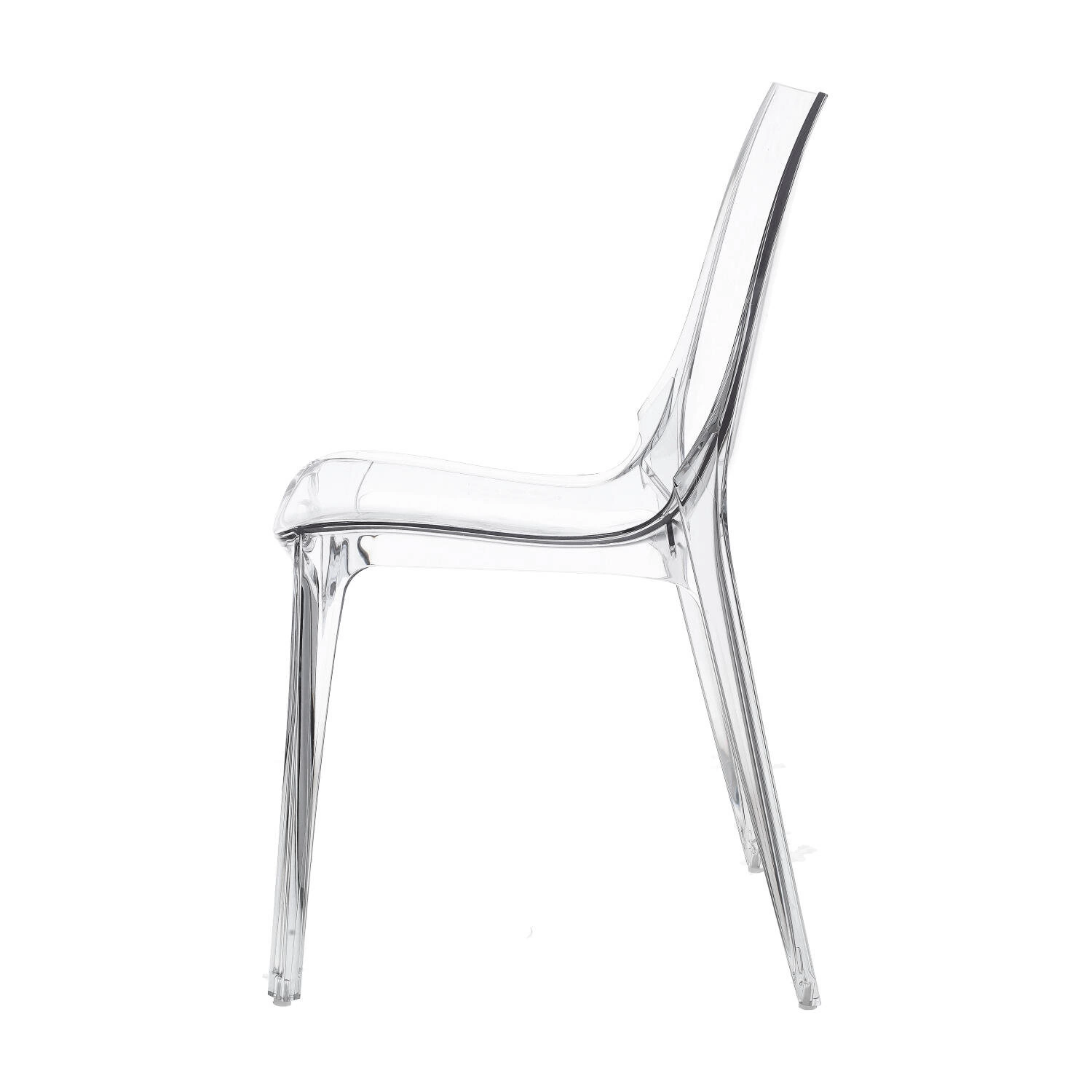 Krzesło Vanity to kolejna odsłona niezwykle modnych transparentnych siedzisk. To definicja współczesnego stylu modern glamour, który na stałe zagościł w europejskich jadalniach i sypialniach. Jeśli poszukujesz oryginalnego krzesła do stołu lub funkcjonalnego siedziska do toaletki, Vanity jest propozycją właśnie dla Ciebie! Wykonane z poliwęglanu, w dwóch wersjach, bez lub z podłokietnikami gwarantuje łatwość w czyszczeniu i wytrzymałość. Materiał, z którego wykonano siedzisko, umożliwia użytkowanie również na zewnątrz, dzięki czemu Vanity może stać się oryginalnym krzesłem na balkon lub do ogrodu. Możliwość sztaplowania aż do 8 sztuk na sobie sprawdzi się szczególnie we wnętrzach komercyjnych takich jak restauracja lub hotel.