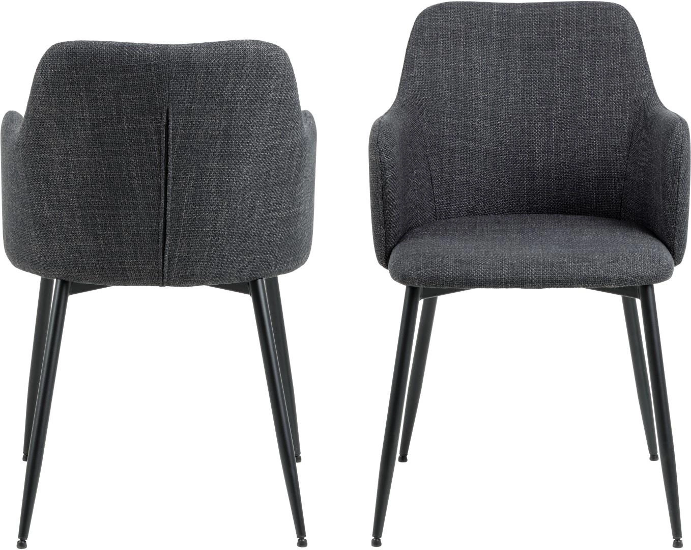Krzesło Verno Grey Arm marki Actona to esencja nowoczesnego komfortu – tapicerowane ciemnoszarą tkaniną, z wygodnymi podłokietnikami i stabilną, matową podstawą na czterech czarnych nogach. Oferuje optymalną wysokość siedziska 49 cm oraz szerokość 54,5 cm, doskonale sprawdzając się jako krzesło do jadalni, salonu lub kuchni. Kubełkowa forma, miękkie wypełnienie i wyprofilowane oparcie zapewniają relaks na najwyższym poziomie podczas wspólnych posiłków i spotkań.