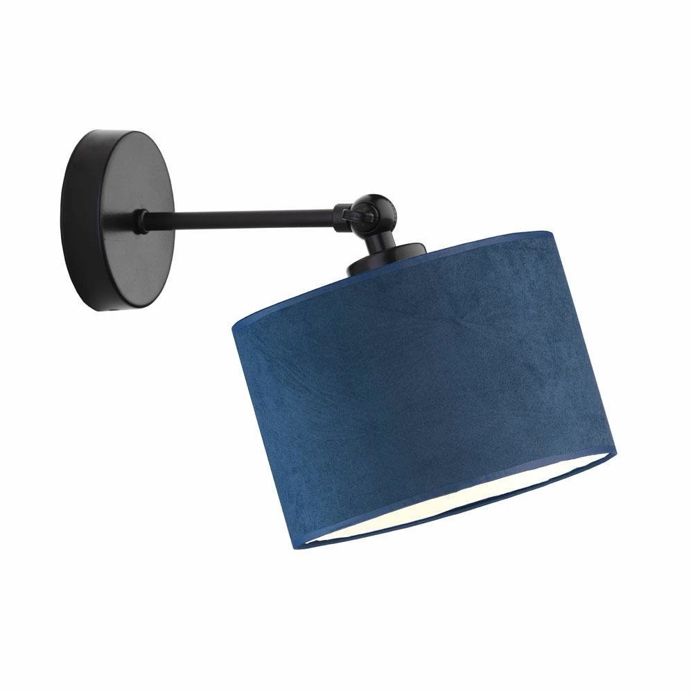 Kinkiet ścienny TETE glamour czarny z morskim welurowym abażurem regulowany do sypialni LYSNE