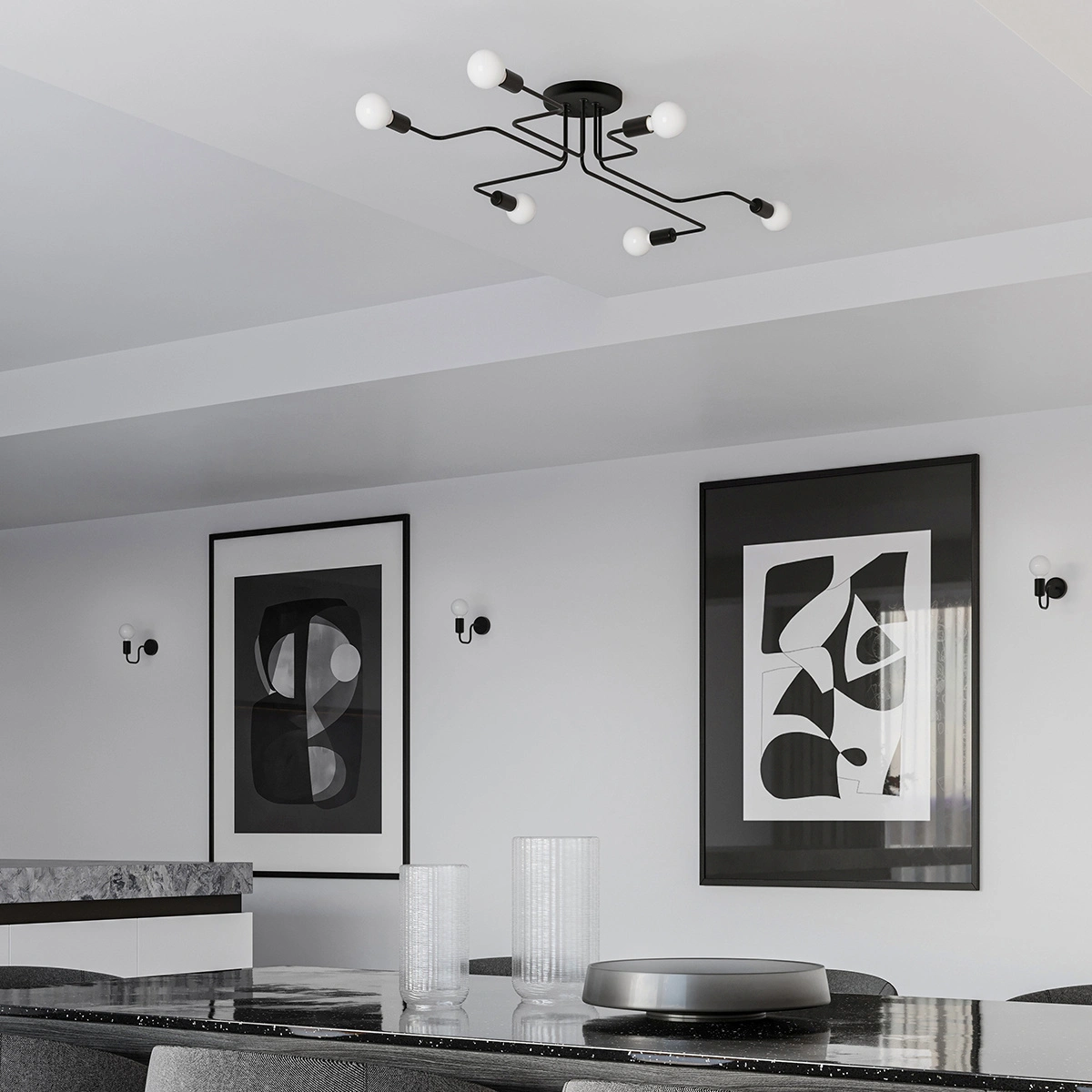 - Czarna stal i loftowy design – podkreślą nowoczesny charakter wnętrza i sprawią, że lampa stanie się wyrazistym akcentem dekoracyjnym.