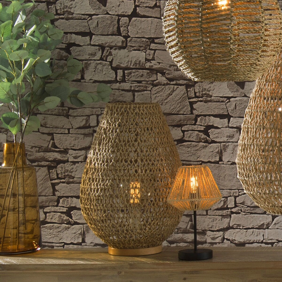 - Klosz z sznurka papierowego i metalu, zapewniający unikalny wygląd i miękkie światło.
