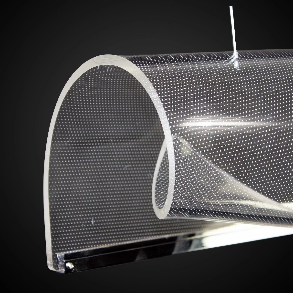 Projekt Cortina no. 3 przyciąga uwagę futurystyczną linią i elegancją wykończenia. To lampa sufitowa LED, która doskonale prezentuje się zarówno w nowoczesnym salonie, jadalni, jak i nad wyspą kuchenną. Transparentna oprawa oraz chromowany połysk tworzą wyjątkowy efekt świetlny i podkreślają prestiż wnętrza. Dzięki zintegrowanemu źródłu światła LED o mocy 26W i ciepłej barwie 3000K, uzyskasz przytulną atmosferę – idealną zarówno do codziennego relaksu, jak i spotkań przy stole.