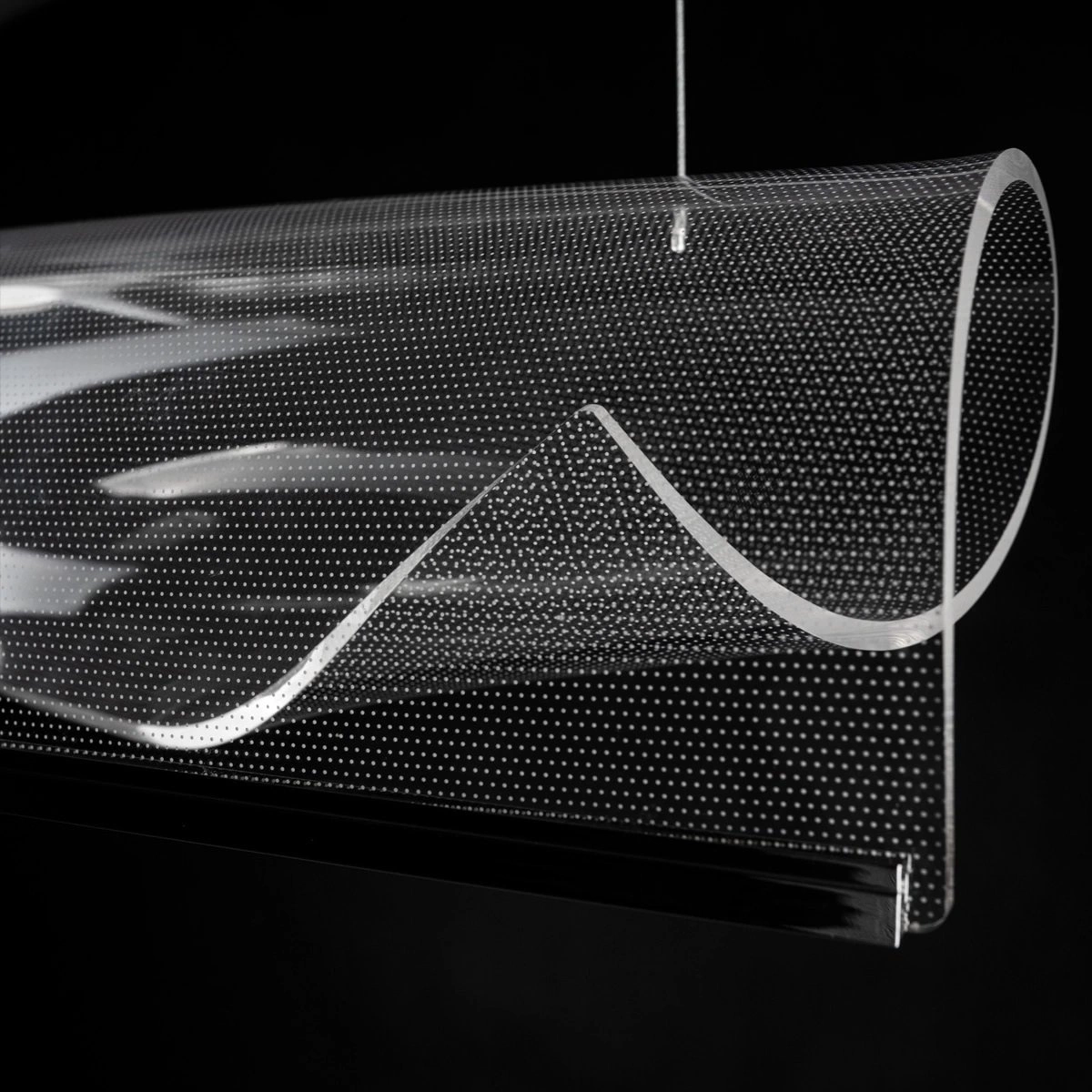 Lampa wisząca LED Cortina no. 3 marki ALTAVOLA DESIGN to nowoczesna propozycja do salonu, jadalni lub nad stół, łącząca w sobie efektowny design i funkcjonalność. Chromowane wykończenie oraz transparentne elementy nadają jej wyrazisty, a jednocześnie subtelny charakter. Model oferuje regulowaną wysokość (do 150 cm) i szerokość 138 cm, co pozwala idealnie dopasować oświetlenie do Twoich potrzeb.