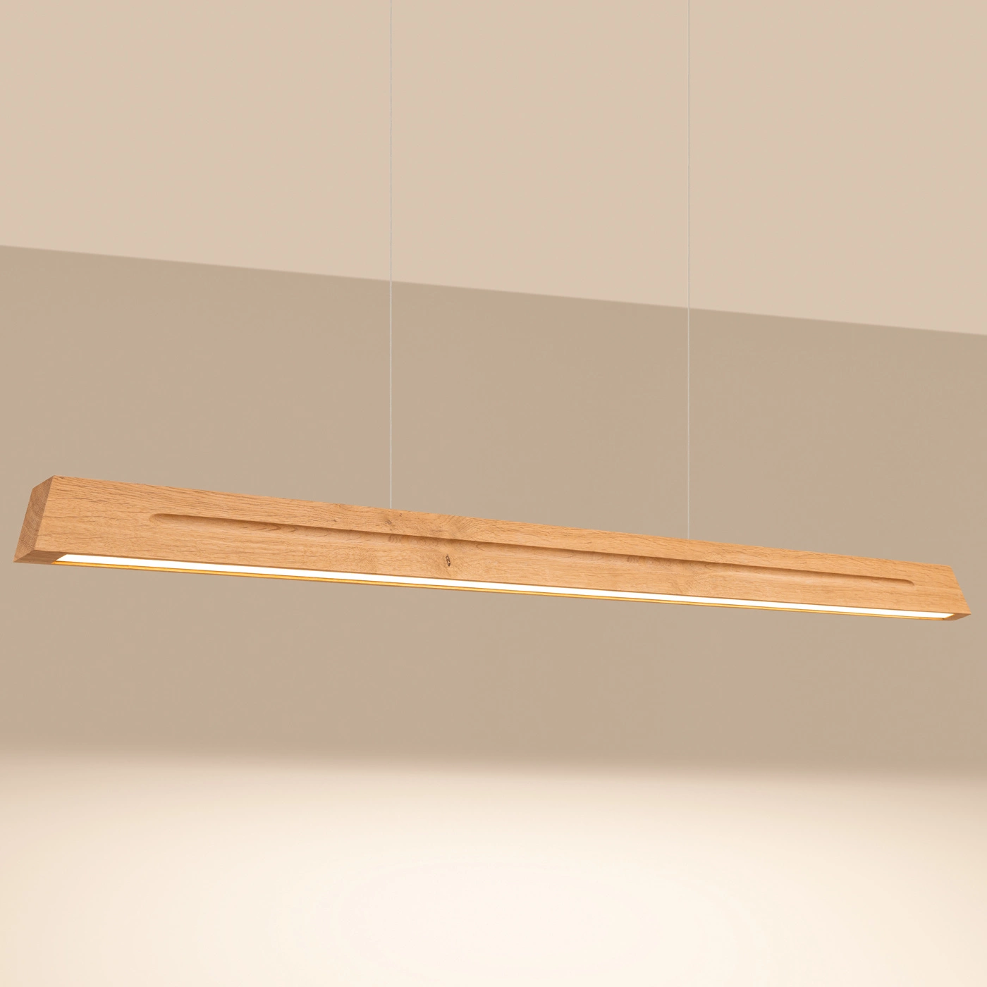 Nowoczesna lampa wisząca SKOG 150 LED 3000K od THORO LIGHTING to doskonałe połączenie minimalizmu i stylu skandynawskiego. Wykonana z wysokiej jakości drewna w kolorze naturalnego dębu, stanowi nie tylko praktyczne źródło światła, ale także efektowny element dekoracyjny. Jej unikalny design podkreśla indywidualny charakter każdego pomieszczenia, od salonu i sypialni, po biuro czy pokój młodzieżowy.