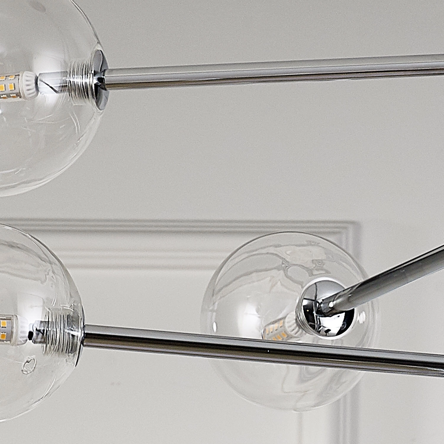 - Transparentne szklane klosze – gwarantują lekkość wizualną i pełne rozproszenie światła