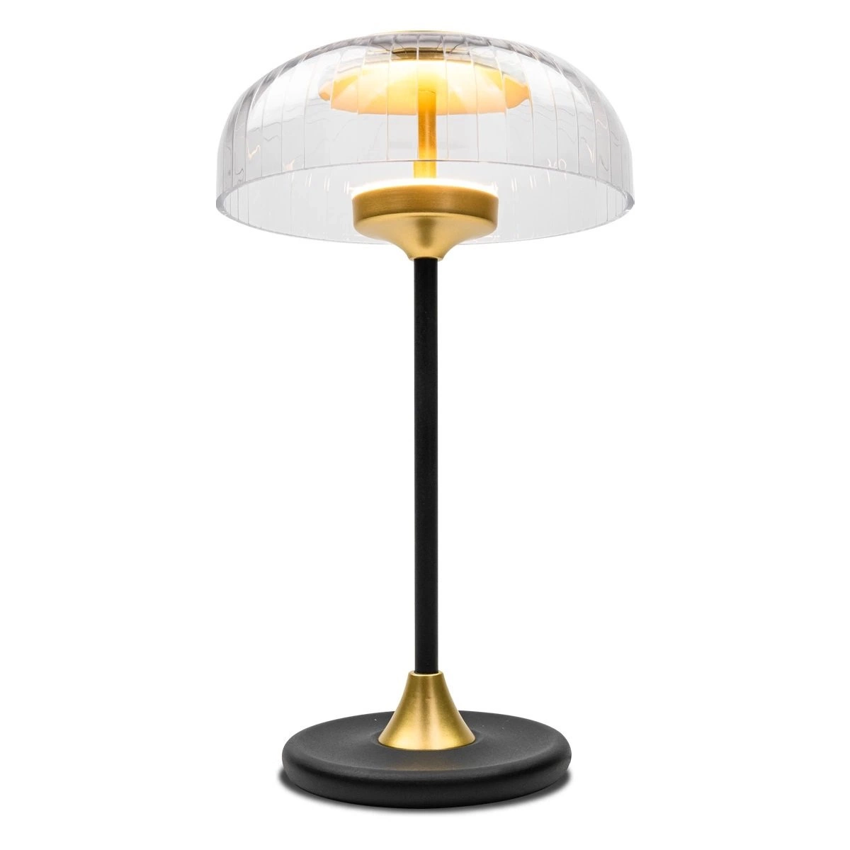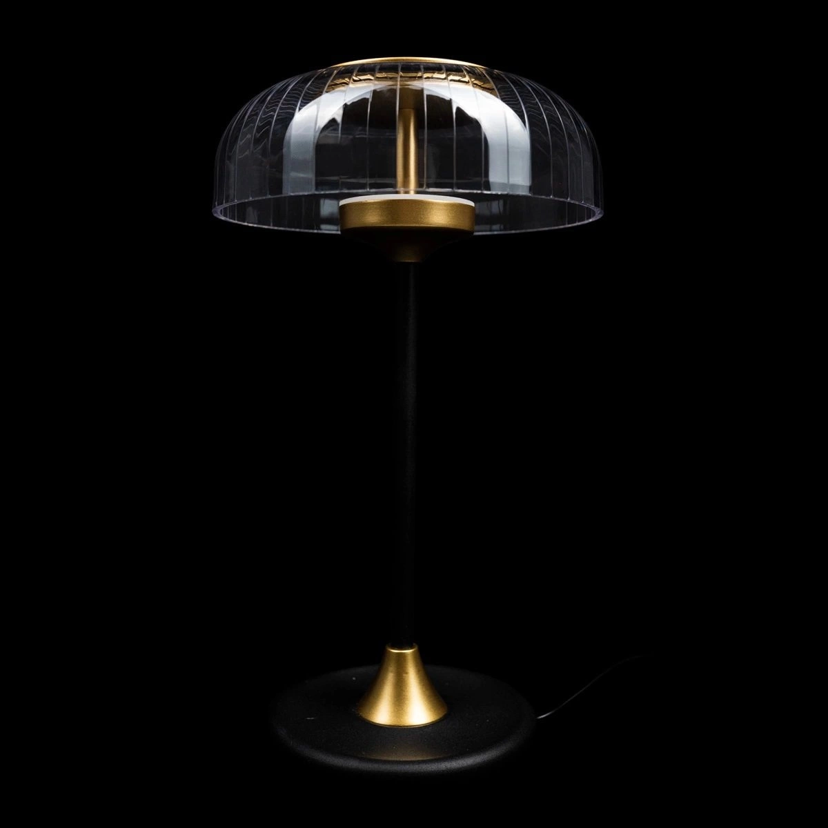Vitrum to lampka nocna, która nadaje wnętrzu luksusowego charakteru dzięki harmonijnemu połączeniu czarnego i złotego wykończenia. Przezroczysty szklany klosz subtelnie rozprasza światło, tworząc przytulną atmosferę sprzyjającą wieczornemu relaksowi. Nowoczesna forma sprawia, że sprawdzi się zarówno w aranżacjach glamour, jak i we wnętrzach z nutą elegancji.