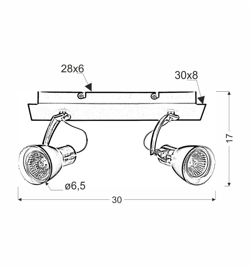 - Lampa posiada oprawę żarówki GU10 i dwa źródła światła o mocy 50W każde, dzięki czemu idealnie rozświetli każde pomieszczenie