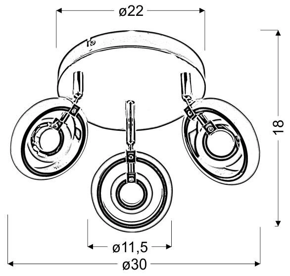 Przedstawiamy wyjątkową lampę sufitową Celt plafon 3x6W LED w kolorze chromu o barwie światła 3000K. Jej unikalny design wyróżnia się podwójną obrotową główką w formie dwóch pierścieni, które można obracać niezależnie od siebie. Wykończenie lampy w idealnie chromowanym metalu dodaje jej eleganckiego i nowoczesnego wyglądu.