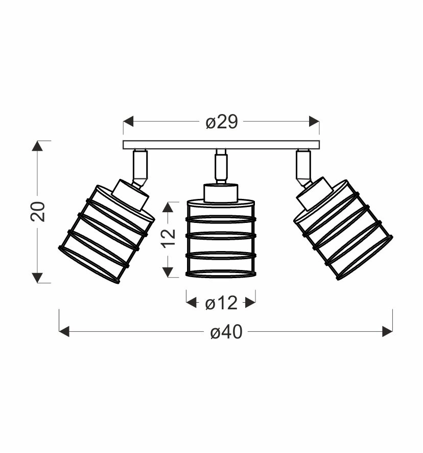 - Trzy oprawki E27 umożliwiają dostosowanie natężenia światła