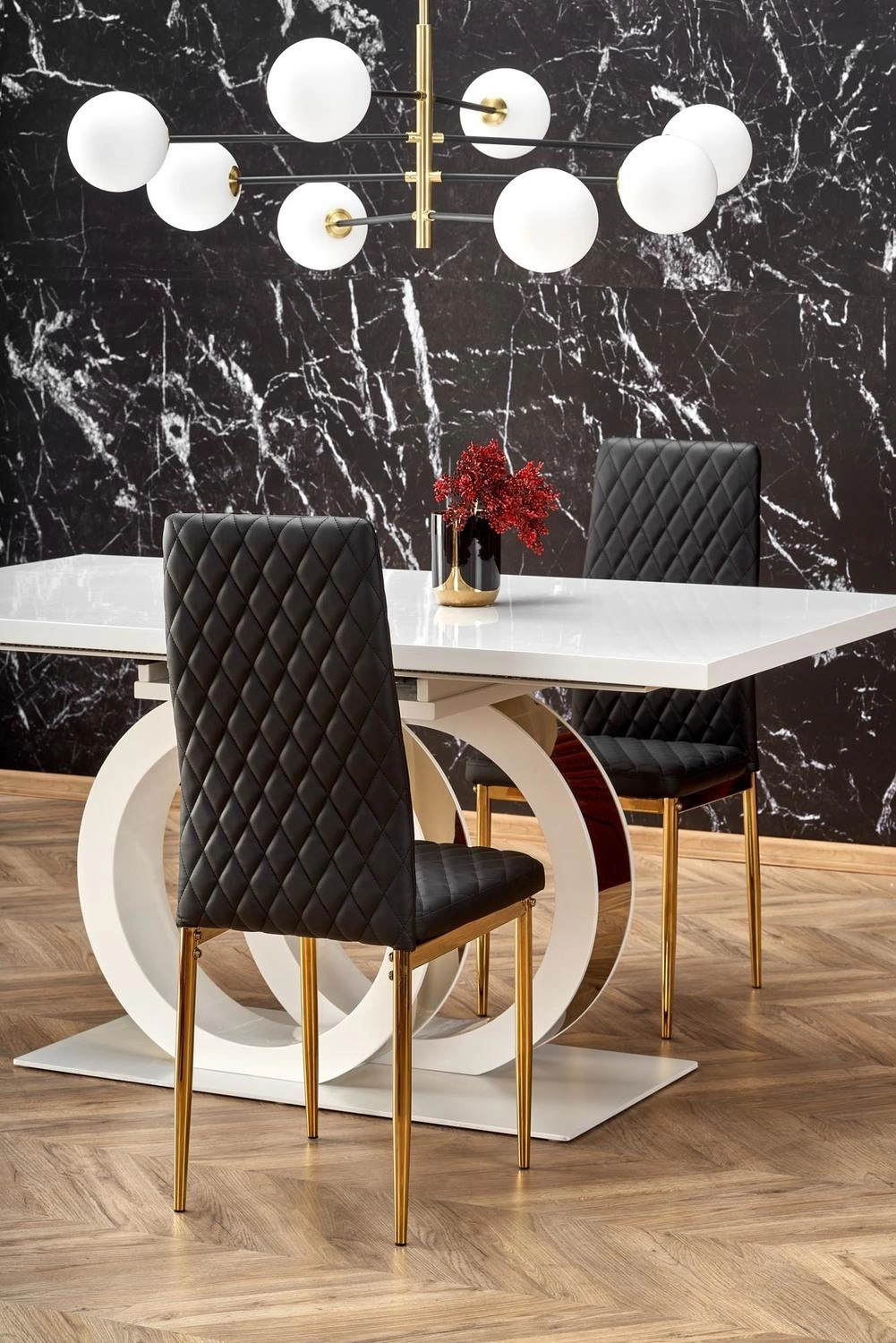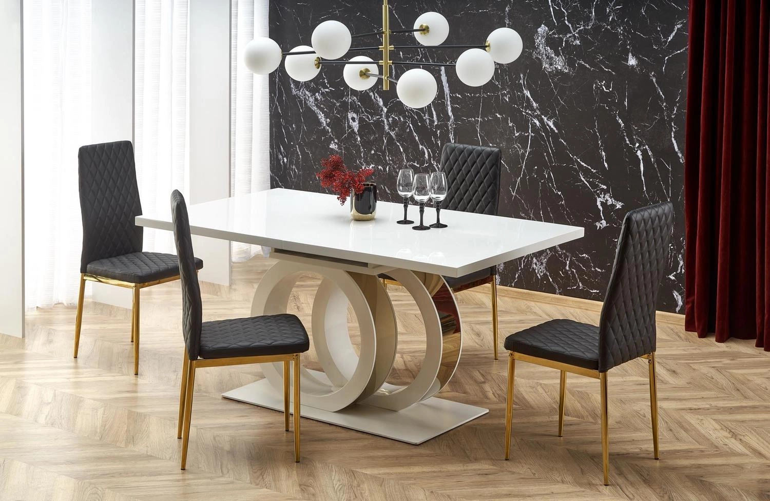 Jego stylowy design glamour w kolorze biało-złotym, dodaje elegancji i nowoczesności do każdego wnętrza. To mebel, który wyróżnia się spośród innych i przyciąga uwagę swoim wyglądem. Stół Change to nie tylko funkcjonalność, ale również wyjątkowy element dekoracyjny, który doda charakteru Twojemu domowi. Korzyści wynikające z wykorzystania materiałów takich jak stal nierdzewna i MDF lakierowany, to nie tylko trwałość, a także łatwość w utrzymaniu czystości.