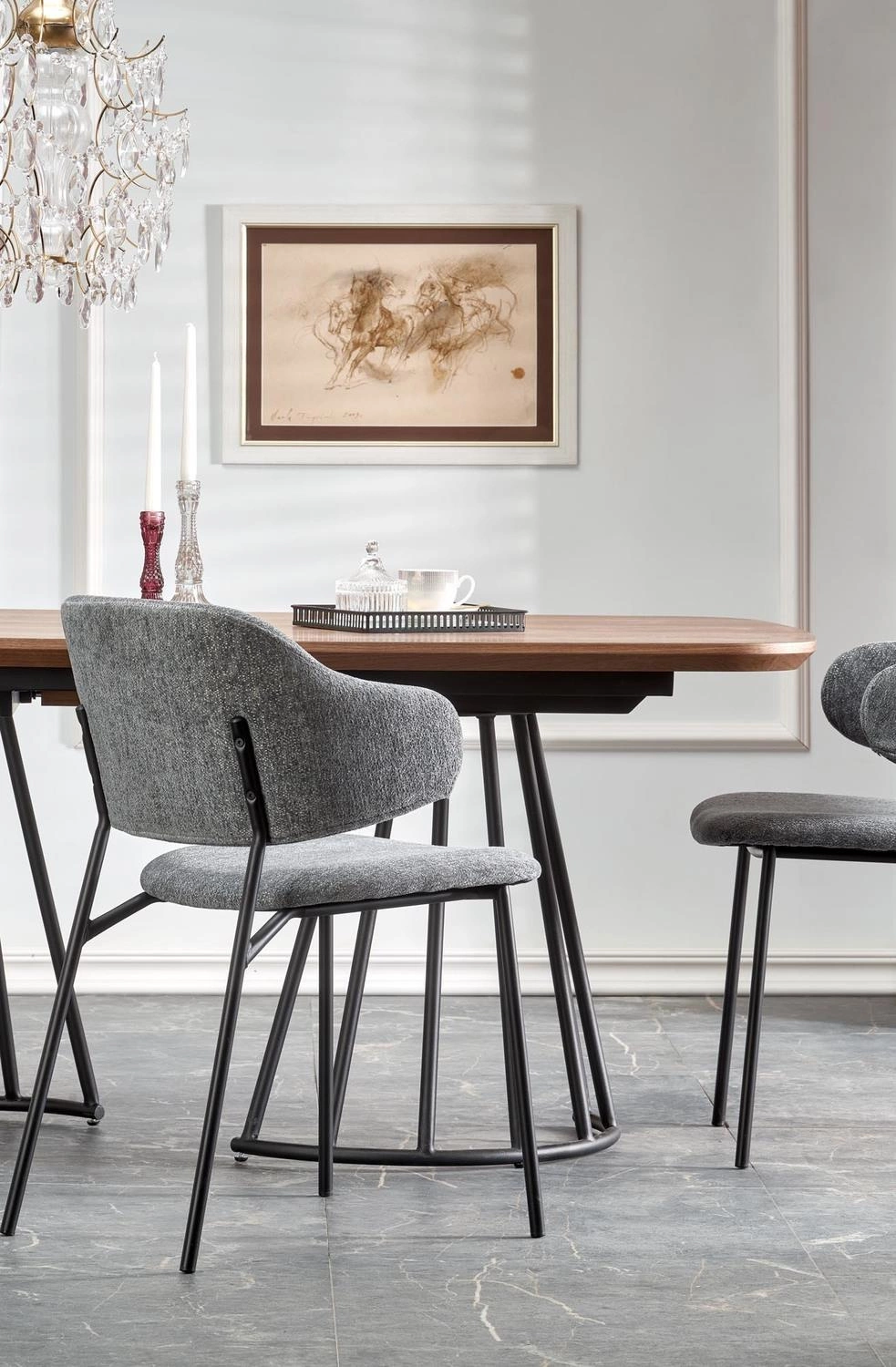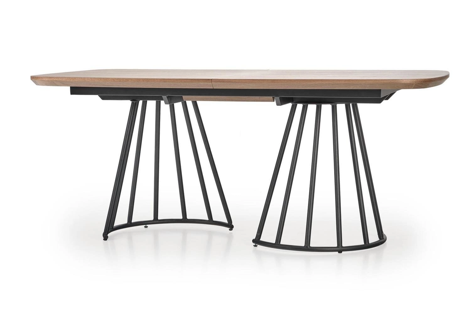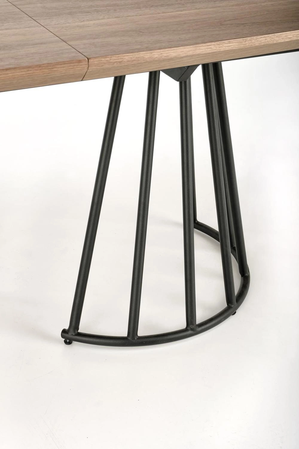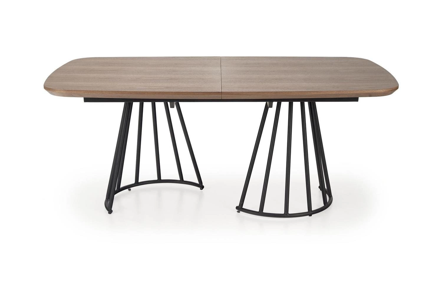 Ten rozkładany stół to idealne połączenie funkcjonalności i stylu. Jego orzechowy blat wykonany z trwałej płyty MDF wraz z naturalną okleiną dodaje mu eleganckiego wyglądu, który będzie pasował do każdego wnętrza. Metalowe nogi w charakterystycznej wachlarzowej formie nie tylko wyglądają stylowo, ale także są stabilne i wytrzymałe, co zapewni Ci długie lata użytkowania.