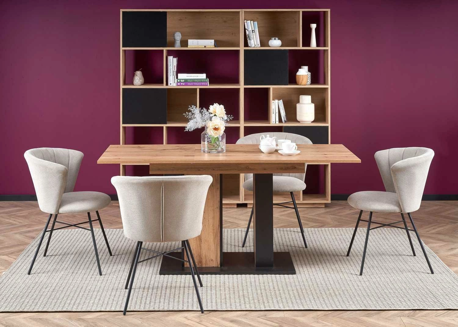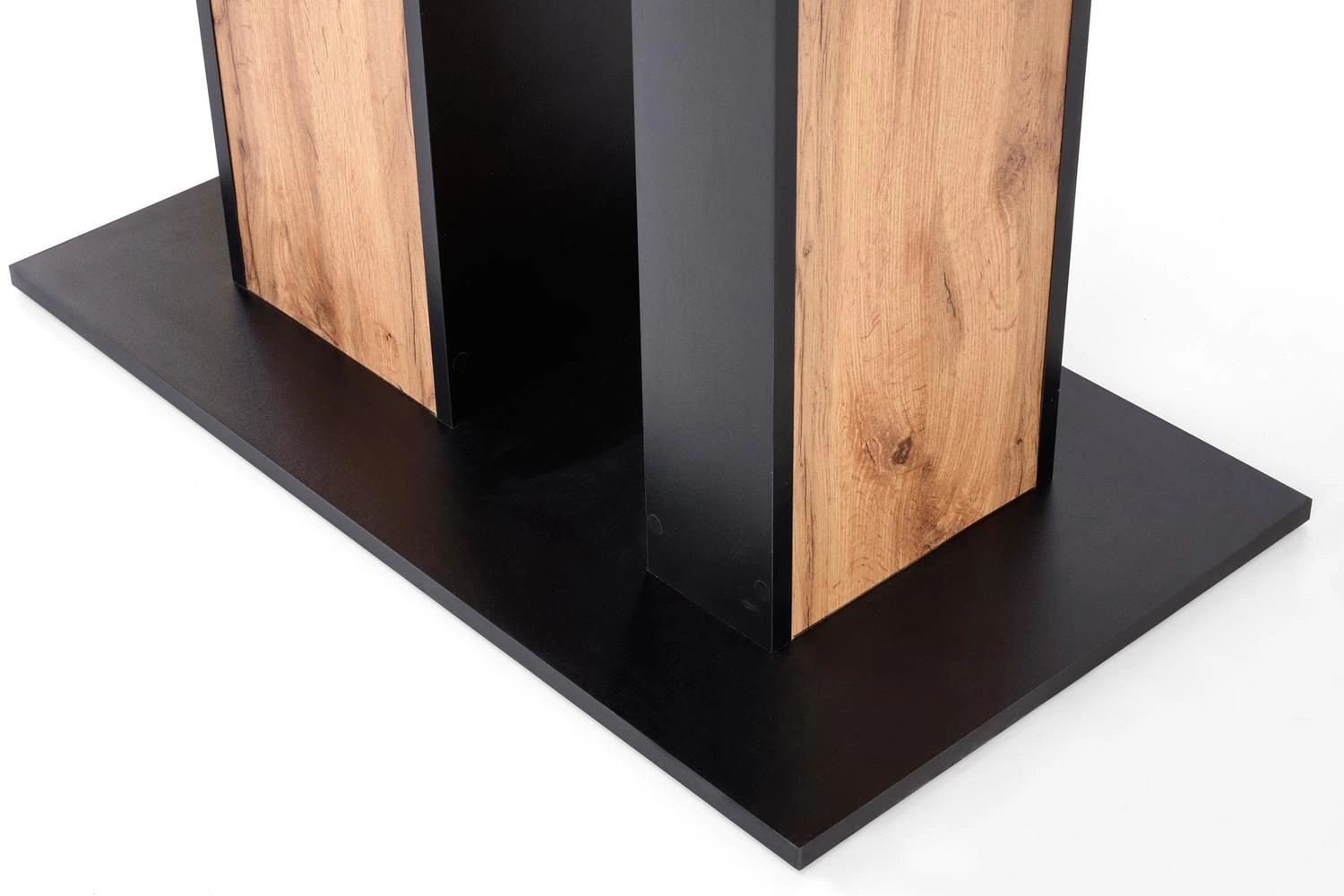 Oryginalny design z pewnością przypadnie do gustu wielbicielom nowości. Blat stołu wykonany z płyty laminowanej okleinowanej w kolorze dąb wotan i czarny, co nadaje mu eleganckiego i nowoczesnego wyglądu. Wytrzymałe materiały i solidna konstrukcja stołu Midalo gwarantują długotrwałe użytkowanie. Blat stołu wykonany z płyty meblowej okleinowanej jest odporny na zarysowania i uszkodzenia mechaniczne.
