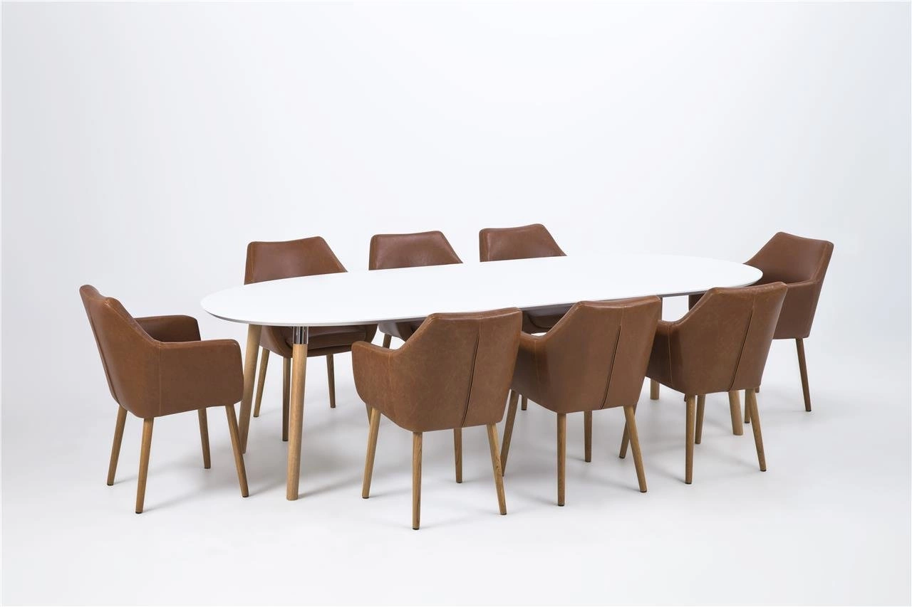 Minimalistyczny stół Belina marki Actona wpisuje się zarówno w nowoczesne jak i bardziej klasyczne wnętrza, dając wiele możliwości aranżacji. Dzięki swoim rozmiarom, duży, prawie trzymetrowy stół jest doskonałym wyborem do kuchni lub jadalni. Stół wykonany jest z drewna i płyty mdf. Toczone nogi z jasnego drewna zwężają się lekko ku dołowi. Przymocowane są do blatu za pomocą chromowanych uchwytów, widocznych spod spodu, nadając meblowi bardziej współczesny charakter. Blat z polakierowanej na biało płyty mdf ma owalny kształt. Jasne, neutralne kolory pozwalają na aranżacje w wielu stylach i gamach kolorystycznych.